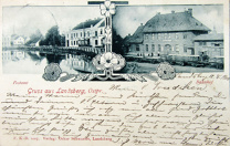 1900 , Widokówka z Górowa ze zdjęciami południowo-wschodniego brzegu Stawu Garncarskiego z pocztą oraz dworca kolejowegoSkomentuj zdjęcie |