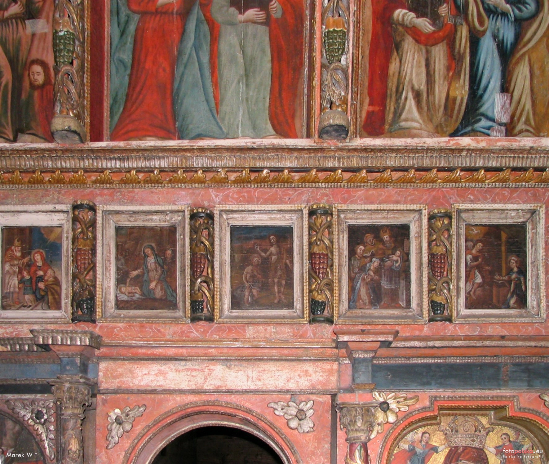 1 pobranie 454 odsłony 6 średnia ocen Poprzednie i następne zdjęcia Marek W Obiekty widoczne na zdjęciu Wnętrza więcej zdjęć (7) Cerkiew greckokatolicka św. Kosmy i Damiana więcej zdjęć (30) Zbudowano: 1841 Zabytek: 826 z 14.04.1997 Cerkiew greckokatolicka p.w. św. Kosmy i Damiana. Nieużytkowana od II wojny światowej, po kapitalnym remoncie została udostępniona turystom jako filia Muzeum Okręgowego w Nowym Sączu. Jest to cerkiew łemkowska typu północno-zachodniego, orientowana, trójdzielna. Prostokątnie zamknięte prezbiterium z zakrystia od północy, kwadratowa nawa i babiniec zbudowane na zrąb, słupowa wieża obejmuje zachodnią część babińca i przedsionek. Nad prezbiterium i nawą dachy namiotowe kryte gontem, nad częścią babińca dach dwuspadowy. Pozorne latarnie, gzymsy oraz izbica wieży są wiel9obarwnie malowane – zdobienia te, na podstawie nikłych zachowanych śladów przywrócono w czasie remontu cerkwi w latach sześćdziesiątych. Wnętrze jest nakryte stropami płaskimi. Dominuje tu naturalny kolor drewna. Nad wejściem do babińca wyryta data budowy – 1841. W przedsionku znajduje się mała ekspozycja poświęcona historii cerkwi, obejmująca m. in. zdjęcia ukazujące kolejne etapy remontu. Najcenniejszym elementem wyposażenia jest osiemnastowieczny ikonostas. Jego barokowe ramy mieszczą wiele godnych uwagi ikon. W nawie znajduje się barokowy ołtarz boczny z ikoną Ukrzyżowania z XIX w. Połączony z nawą babiniec obiega chór z drewniana balustrada . Pod nią ustawiono portal z nieistniejącej cerkwi w Nieznajowej, wycięty w kształt trójliścia, pięknie malowany, rzeźbiony i oznaczony datą „1780 4 sierpnia” zapisaną cyrylicą. Cerkiew otacza drewniane ogrodzenie z bramką. Nieopodal znajduje się cmentarz łemkowski. Opis pochodzi z : Magdalena i Artur Michniewscy, Marta Duda „Cerkwie drewniane Karpat. Polska i Słowacja.” Oficyna Wydawnicza „Rewasz”. Pruszków 2003. |