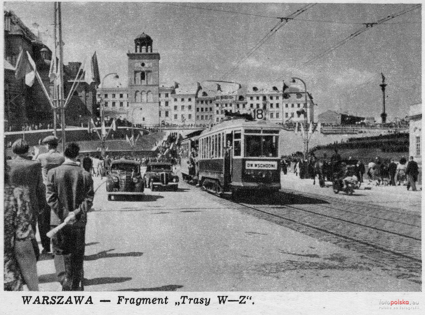 Typ Lw (Linke-Hofmann Standard) więcej zdjęć (31) Zbudowano: 1949 Zlikwidowano: 1967 Tramwaj Lw - to nazwa nadana wagonom typu Linke Hofmann Standard, przekazanym w ilości 15 sztuk z Wrocławia do Warszawy w 1949 r. Eksploatacja liniowa tych pojazdów w stolicy zakończyła się w latach 60-tych XX w. Tramwaje w Warszawie więcej zdjęć (300) Zbudowano: 1866/1908 Komunikacja miejska w Warszawie target="_blank">/a>więcej zdjęć (11) Wiadukt Trasy W-Z więcej zdjęć (371) Zbudowano: 1947-1949 Obiekt "Wiadukt Trasy W-Z" obejmuje odcinek Alei "Solidarności" od wylotu tunelu Trasy W-Z do Mostu Śląsko-Dąbrowskiego. Ten fragment alei pełni funkcję dojazdu do mostu na Wiśle i ze względu na ukształtowanie terenu w całości poprowadzony jest na nasypie z wbudowanym wiaduktem nad łącznikiem pomiędzy ulicami Grodzką i Nowy Zjazd oraz wiaduktem nad ciągiem Wybrzeże Kościuszkowskie - Wybrzeże Gdańskie. al. "Solidarności" więcej zdjęć (3166) Dawniej: Zygmuntowska, Aleksandryjska, Aleksandrowska, Leszno, al. Świerczewskiego, Trasa W-Z UWAGA: Zdjęcia z ujęciami odcinka alei pomiędzy wylotem tunelu Trasy W-Z i Mostem Śląsko-Dąbrowskim należy przypisywać do podobiektu alei pod nazwą "Wiadukt Trasy W-Z". Aleja "Solidarności" - jedna z głównych arterii w Warszawie, w przybliżeniu jest tożsama z Trasą W-Z. Zaczyna się od skrzyżowania z ul. Radzymińską, przechodzi mostem Śląsko-Dąbrowskim do centrum i kończy się przy skrzyżowaniu z ul. Młynarską. Po drodze krzyżuje się m.in. z następującymi ulicami: Szwedzka Targowa Jagiellońska gen. Andersa (plac Bankowy) Jana Pawła II Żelazna Na całej swojej długości jest to dwujezdniowa szeroka ulica, o minimum dwóch pasach ruchu w każdą stronę. Wyjątkiem jest odcinek pomiędzy placem Bankowym a ulicą Jagiellońską - tam aleja \"Solidarności\" staje się jednojezdniowa, ale nadal ma dwa pasy ruchu dla obu kierunków (jeden pas zajmują tory tramwajowe, ruch samochodów po nim jest zakazany). W godzinach szczytu jest mocno zakorkowana. Na prawie całej długości przebiega środkiem torowisko tramwajowe. Obecna nazwa poświęcona jest NSZZ \"Solidarność\". Podczas dwudziestolecia międzywojennego jej poszczególne odcinki nosiły nazwy: Wolska, Leszno, Tłomackie, Nowy Zjazd, Zygmuntowska, po wojnie zaś cały ciąg nazwano aleją Świerczewskiego. Od 1991 nosi obecną nazwę na cześć związku zawodowego \"Solidarność\". Pierwszy odcinek ulicy wytyczono po stronie praskiej w 1862 na przedłużeniu linii kolei petersburskiej pod nazwą Aleksandrowska na cześć cara Aleksandra II Romanowa, łącząc ją z wiaduktem Feliksa Pancera, nazwanego Nowym Zjazdem po wybudowaniu Mostu Kierbedzia. Znaczna szerokość ulicy Aleksandryjskiej uwzględniała ruch kołowy i przebieg projektowanej przez Most Kierbedzia linii kolejowej łączącej Dworzec Petersburski z Dworcem Wiedeńskim, jednak z linii tej zrezygnowano na skutek zbyt dużego spadku skarpy wiślanej, a ruch między dworcami przejęła kolejka konna. Kolejka ta posiadała jeden tor z mijankami i trasa przebiegała Aleksandrowską, Nowym Zjazdem, Krakowskim Przedmieściem, Królewską, Marszałkowską do al. Jerozolimskich. Tymczasem po drugiej stronie Wisły początkowy fragment dzisiejszej ulicy stanowiąc oś jurydyki Leszno nosił nazwę ulicy Leszno przechodząc w rejonie Placu Bankowego w Tłomackie. Ulica Leszno biegła do rogatek wolskich i dalej dzisiejszy przebieg ulicy w kierunku Woli pokrywał się z ulicą Wolską. Po odzyskaniu niepodległości przez Polskę ulicę po stronie praskiej przemianowano na Zygmuntowską, która to nosiła do roku 1954, gdy zmieniono ją na al. gen. Karola Świerczewskiego. CC-BY-SA 3.0 Polska |