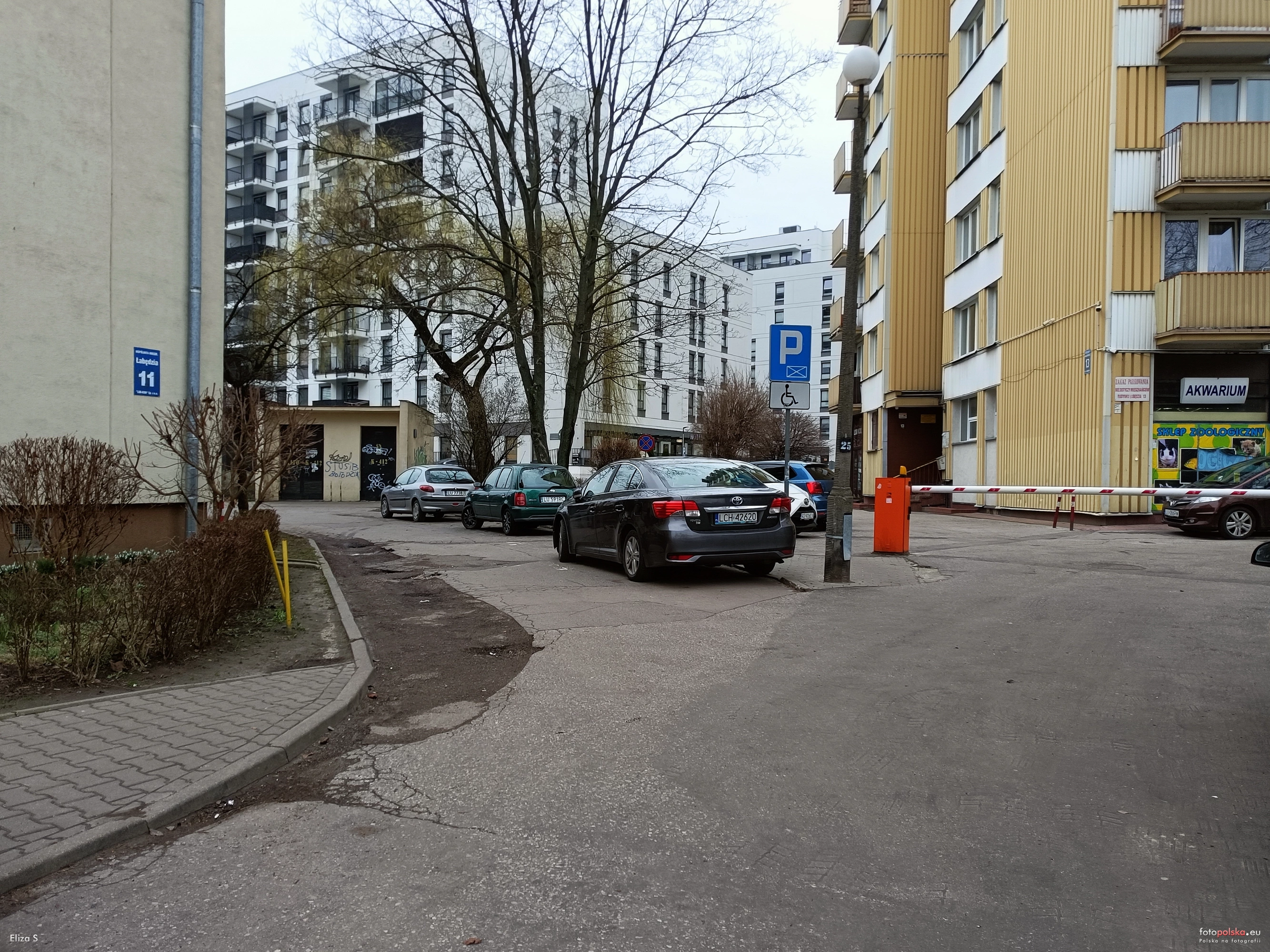 1 marca 2024 , Ulica Łabędzia, widok w kierunku ul. Krańcowej. W głębi Krańcowa 107a |