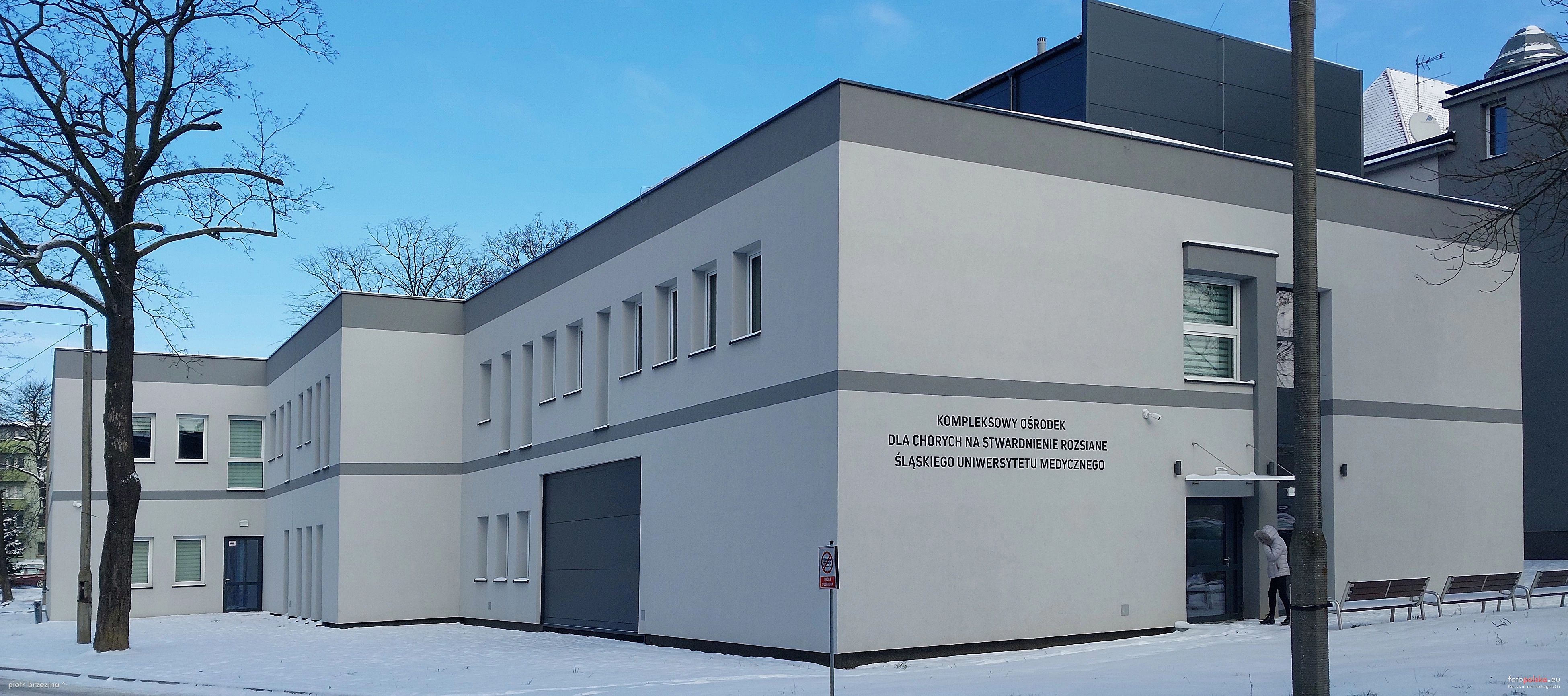 Kolejnym elementem zespołu jest budynek poradni specjalistycznej, zlokalizowany pomiędzy portiernią i pralnią. Zwarta i regularna bryła założona została na planie prostokąta. Całość pokryta dachem czterospadowym z dachówką ceramiczną. Elewacje budynku są surowe, bez ozdób i nieotynkowane. Fasada wsch., od ul. 3 Maja, podzielona ryzalitami na cztery symetryczne części. Okna pierwszej kondygnacji zwieńczono półkoliście, nad prostokątnymi oknami drugiej króluje wysunięty gzyms. W sąsiedztwie znajduje się jeszcze budynek pralni, z wejściem poprzez wysunięty ryzalit w elewacji południowej.