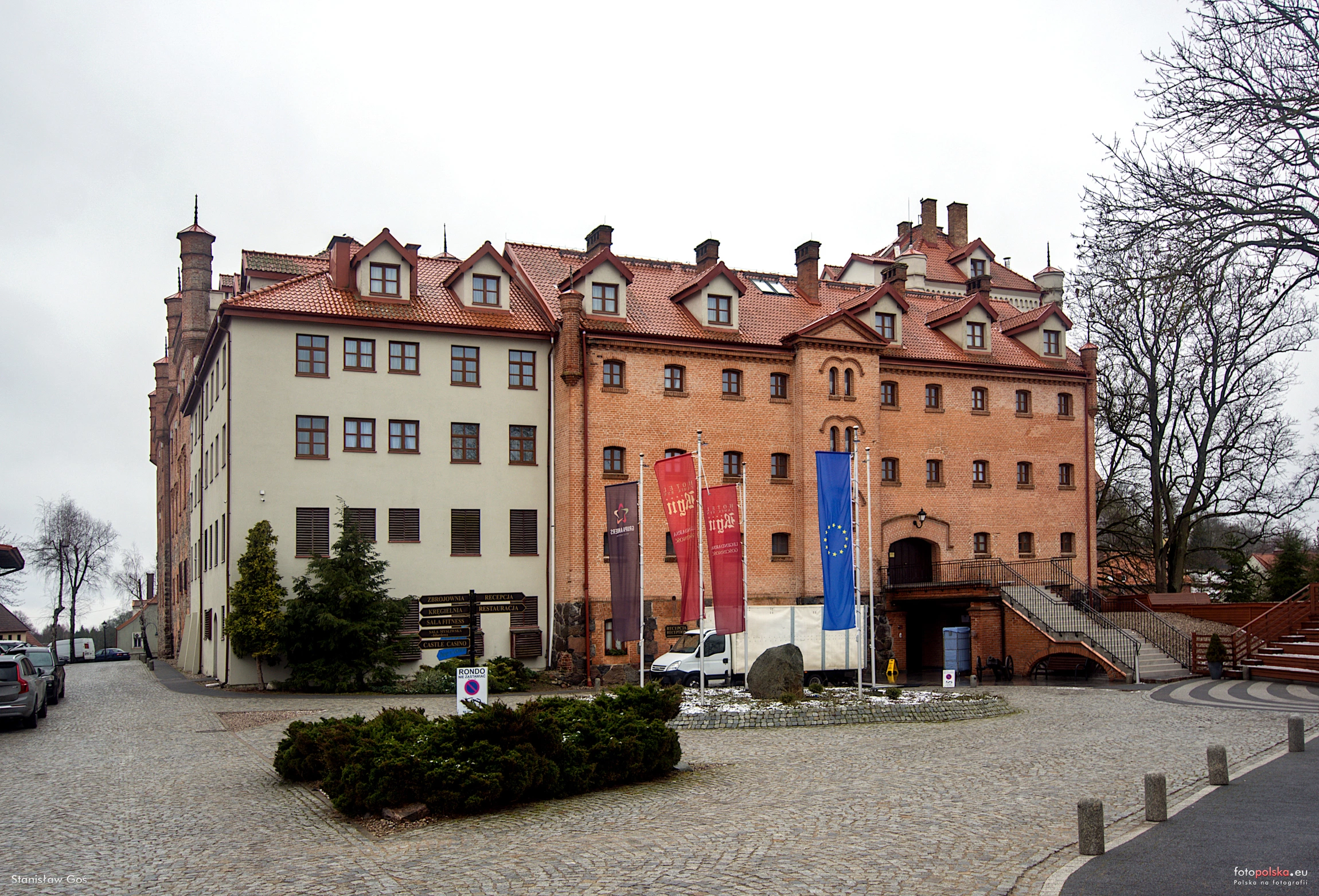 20 lutego 2024 , Ryn. Zamek widziany od strony wschodniej. Otynkowany narożnik to nowa część dobudowana przy przebudowie zamku na cele hotelowe.Skomentuj zdjęcie |