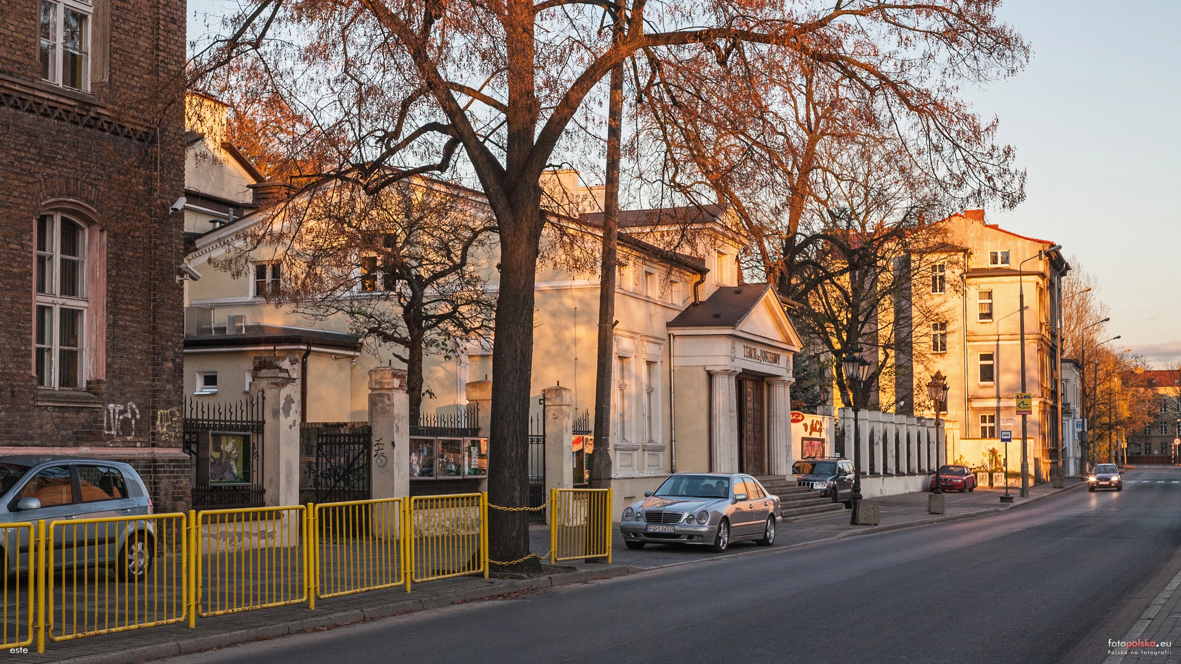 0 pobrań 270 odsłon 0 średnia ocen Poprzednie i następne zdjęcia este Obiekty widoczne na zdjęciu Teatr im. Juliusza Osterwy więcej zdjęć (24) Zbudowano: 1873 Ten neoklasyczny budynek wybudowano w 1873 r. jako miejsce rozrywki w typieXIX-wiecznego establissmentu – lokali gastronomiczno-rozrywkowych. Pierwsze przedstawienie inaugurujące działalność właściwego teatru odbyło się w 1886 r. W 1917 r. utworzono Miejskie Towarzystwo Teatralne, które przejęło opiekę nad teatrem. Dzięki działalności stowarzyszenia udawało się ściągać do Landsbergu artystów tej miary, co światowej sławy artysta operowy, król tenorów Enrico Caruso. W 1923 r. pod kierunkiem miejskiego radcy budowlanego Meyera rozpoczęła się przebudowa obiektu. Fasadę frontową ozdobiono czteroma kolumnami doryckimi, na których wspiera się trójkątny fronton zakończony wystawką z naczółkiem. Artysta malarz Sandforth wykonał nową dekorację wnętrz. Po zakończeniu działań wojennych już 8 września 1945 r. teatr rozpoczął działalność wystawieniem sztuki Ciotunia Aleksandra Fredry przez zespół amatorski. W 1946 r. rozpoczął działalność stały zespół aktorski kierowany przez Leonię i Henryka Barwińskich. W ciągu tego roku wystawił on 13 premier, dając 163 przedstawienia, w tym 89 poza Gorzowem. Równie aktywnie teatr działał w latach 1947–48, kiedy to dyrektorem był Aleksander Gąssowski. Niestety, w kolejnych gorszych latach teatralną działalność zawieszono, a na deskach sceny obok przedstawień odbywały się nawet pokazy cyrkowe i rozgrywano pięściarskie czy zapaśnicze pojedynki. Ostatecznie stały, państwowy teatr powołano w 1960 r. Jego odrodzenie nastąpiło za dyrekcji (1963–66) znanej polskiej aktorki i reżyserki – Ireny Byrskiej. Dowodem niech będzie fakt, że teatr przywoził nagrody z ogólnopolskich festiwali, a Don Alvaresa Herakliusza Lubomirskiego zaprezentowała Telewizja Polska. W 1967 r. zainicjowano Konfrontacje Teatralne (od 1983 r. znane jako Gorzowskie Spotkania Teatralne), które przez lata budują gorzowską teatralną tradycję. Za: ul. Teatralna więcej zdjęć (144) Dawniej: Theaterstrasse |