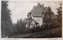 Lata 1930-1940 , Willa Margareta. Willa znajdowała się przy ulicy Krynicznej (trzeci budynek idąc w górę od ul. Kamiennej w/g planu miasta Altheide z 1911 roku). Widoczny jest za nią po lewej stronie fragment willii "Balzer" (późniejszej Zweitannenhaus). Oba budynki obecnie nie istnieją, a na ich miejscu stoi sanatorium ZUK "Korab", z adresem Kryniczna 5.Skomentuj zdjęcie