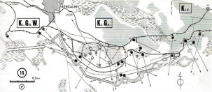 1997 , Mapka obrazująca rozmieszczenie schronów w drugim co do najsilniejszych węzłów obrony Wału Pomorskiego, zlokalizowanego na wschód od Tuczna k/Strzalin. |