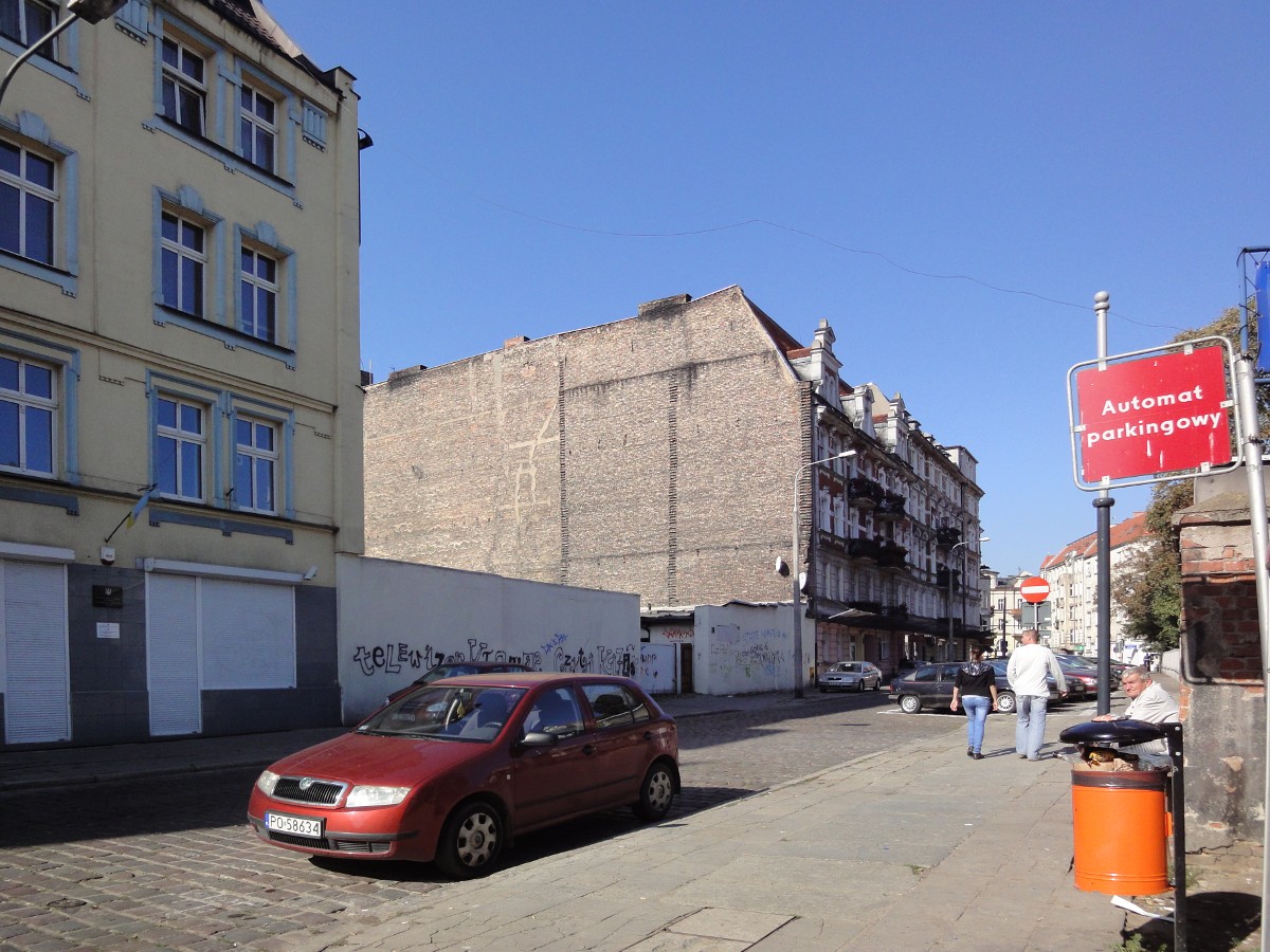 24 września 2011 , Ulica Grobla w Poznaniu. Widoczny po lewej fragment budynku to prawdopodobnie kamienica nr 27 albo 27A. Zdjęcie zamieszczam "wywołany do tablicy" pytaniem Jurkapogodno - w podpisie pod - o graffitti. Tu widać je lepiej, choć częściowo zasłania je zaparkowany samochód. Niestety, nikt nie przewidział podczas robienia zdjęcia, że to graffitti może być interesujące...Skomentuj zdjęcie
