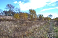 2010 , Pozostałości torowiska kolejowego przy Wiązowej. Po lewej widoczny mur cmentarza żydowskiego. |