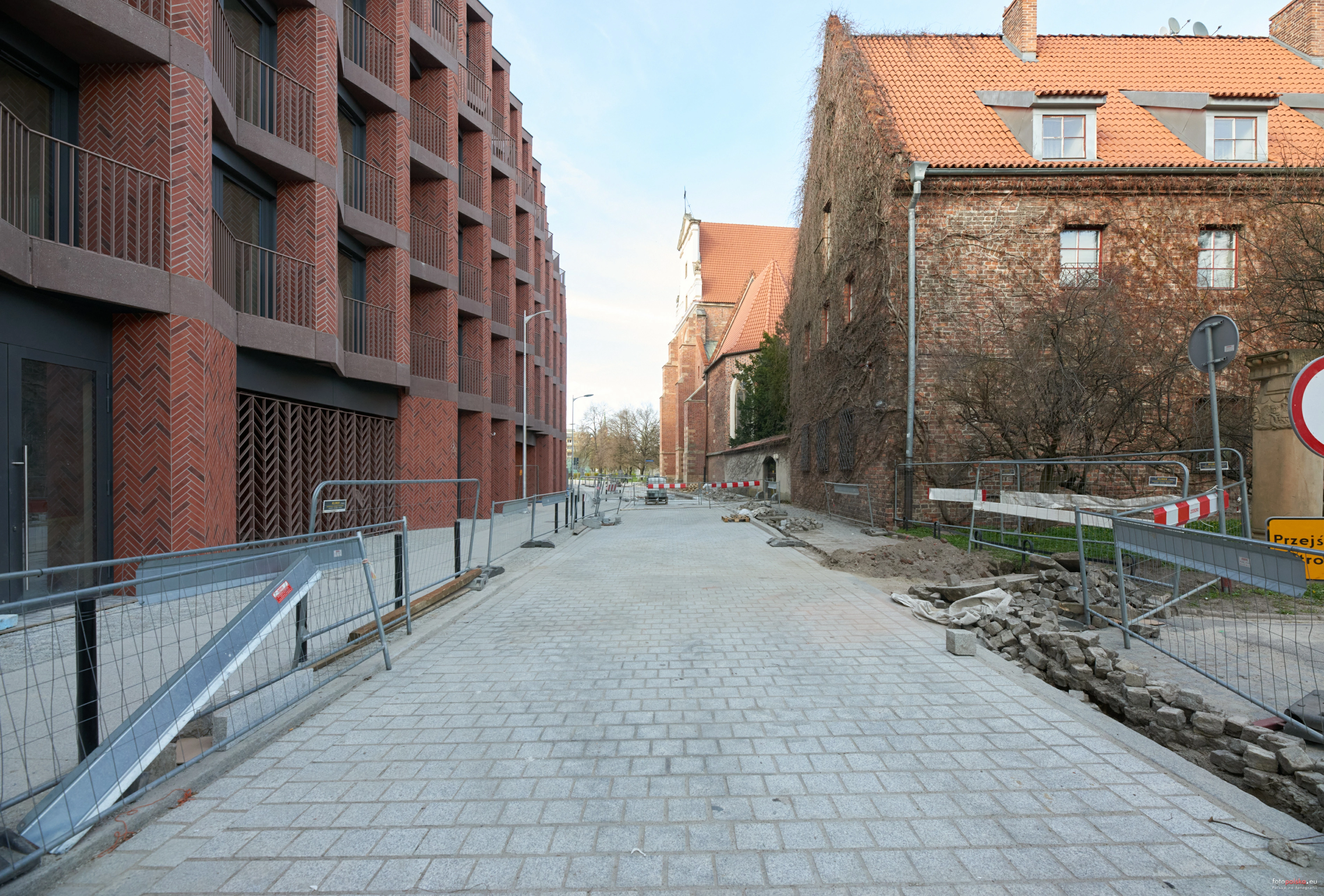 29 marca 2024 , Nowa jezdnia ulicy Bernardyńskiej. To chyba pierwsza we Wrocławiu z nowej kostki brukowej - cud! ... albo deweloper zafundował.Skomentuj zdjęcie