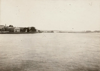16 sierpnia 1918 , Podwyższony stan wody na Wiśle. Po prawej widać zalaną Saską Kępę i domek celny przy zniesionym mostku.Skomentuj zdjęcie |
