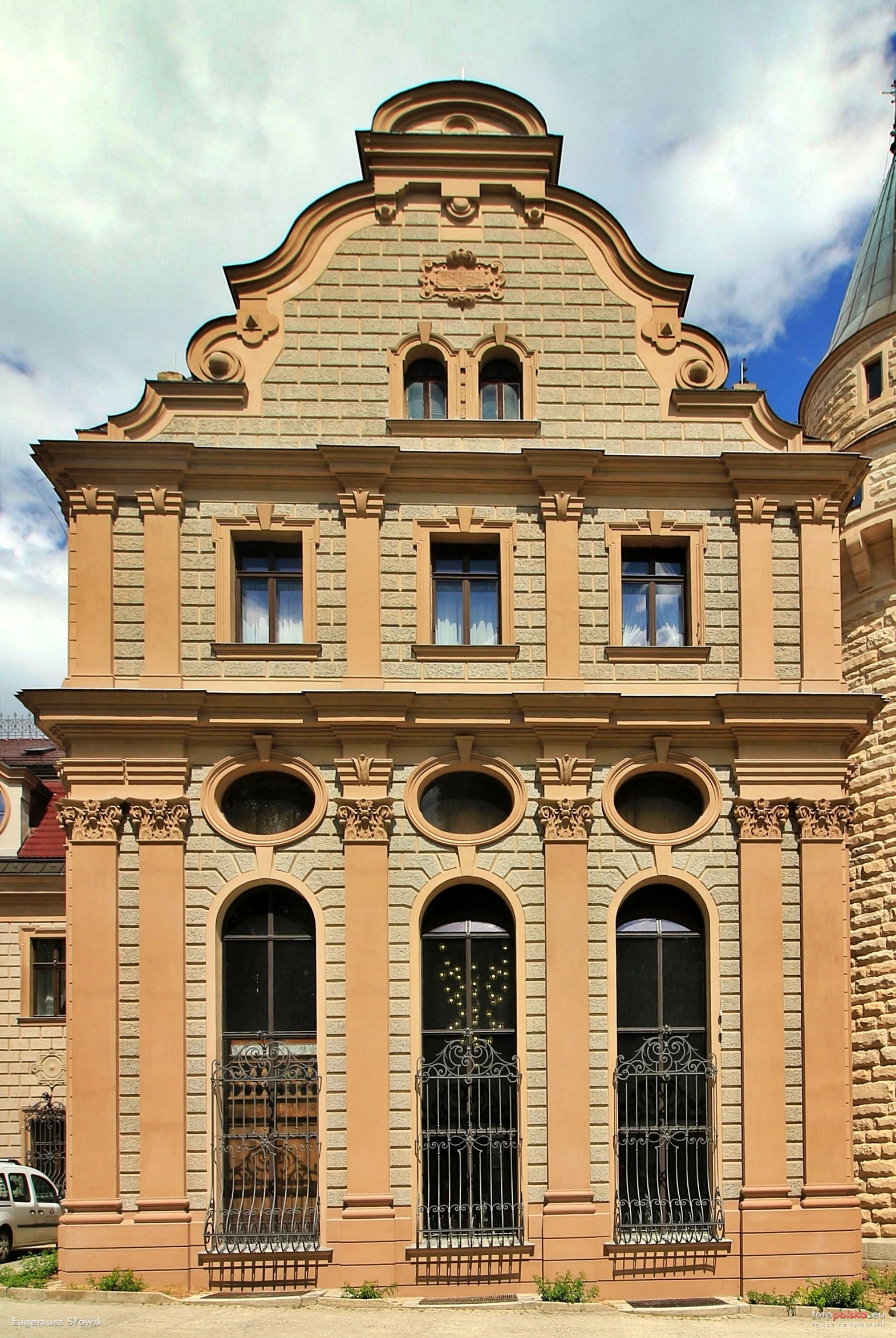 0 pobrań 1112 odsłon 6 średnia ocen Poprzednie i następne zdjęcia Eugeniusz S. Obiekty widoczne na zdjęciu Zamek więcej zdjęć (414) Atrakcja turystyczna Zbudowano: XVII w. Dawniej: Centrum Terapii Nerwic, Wojewódzki Ośrodek Profilaktyczno-Sanatoryjny, Schloß Zabytek: 681/63 z 24-06-1963 Zamek w Mosznej, ufundowany przez Thiele-Wincklerów - jedną z najzamożniejszych śląskich rodzin, należy do najwspanialszych zabytkowych budowli na Opolszczyźnie. Odbudowany i rozbudowany został po pożarze, który wybuchł w nocy z 2 na 3 kwietnia 1896 r. (powiększony został w 1913 r). Duże zróżnicowanie kształtów i wysokości, zawiłość układu poszczególnych elementów architektonicznych, wreszcie całkowite zatarcie brył stanowiących korpus każdej z części zamku powoduje, iż trudno jest od razu pojąć koncepcję zawartą w owej budowli. Najciekawsze pomieszczenia w zamku to: reprezentacyjna klatka schodowa z krużgankiem w obecnej kawiarni (cały wystrój z sandałowego drewna), galeria, najbardziej imponujący "gabinet pana" (obecna biblioteka), a ponadto kaplica, salon "pod pawiem", sala myśliwska, stylowe apartamenty - czarny i biały, jadalnia, palmiarnia. Wszystkie te pomieszczenia służą kuracjuszom, niektóre z nich udostępniane są również do zwiedzania. Zamek posiada ogółem 365 pomieszczeń i 99 wież i wieżyczek. Powierzchnia wynosi 7 tys. m2, kubatura - 65 tys. m3. Początki tej budowli to prawdopodobnie połowa wieku XVII. Najstarsza część zamku w Mosznej jest odbudowanym pałacykiem o barokowych XVIII - wiecznych formach. Dwa boczne skrzydła powstały później. Plan zamku układa się w nieregularny kształt litery U, przy czym skrzydła boczne, dołączone od wschodu i zachodu do środkowej części pałacu, głęboko wchodzą w stronę parku, ujmując z obu stron taras z ozdobną balustradą i reprezentacyjnymi lustrzanymi schodami. Część środkowa, to dawny pałac barokowy, który w roku 1896 prawie doszczętnie spłonął. W tym samym roku odbudowany w pierwotnym kształcie. Do roku 1900 powstała najbardziej okazała część wschodnia, a w latach 1912-14 dobudowane zostało skrzydło zachodnie. Po wojnie użytkowały go różne instytucje, aż do 1972 roku, kiedy w zamku zorganizowany został Wojewódzki Ośrodek Profilaktyczno-Sanatoryjny. Do kwietnia 2013 roku w zamku mieściło się Centrum Terapii Nerwic, które zostało przeniesione do nowego obiektu wybudowanego nieopodal. Część wnętrz zamku udostępniona jest zwiedzającym. Zamek oferuje również miejsca noclegowe w pięknych zabytkowych wnętrzach. Do dyspozycji gości przeznaczone są pokoje oraz apartamenty z osobną łazienką oraz apartament 5 osobowy posiadający dwie sypialnie. Info ul. Zamkowa więcej zdjęć (887) |