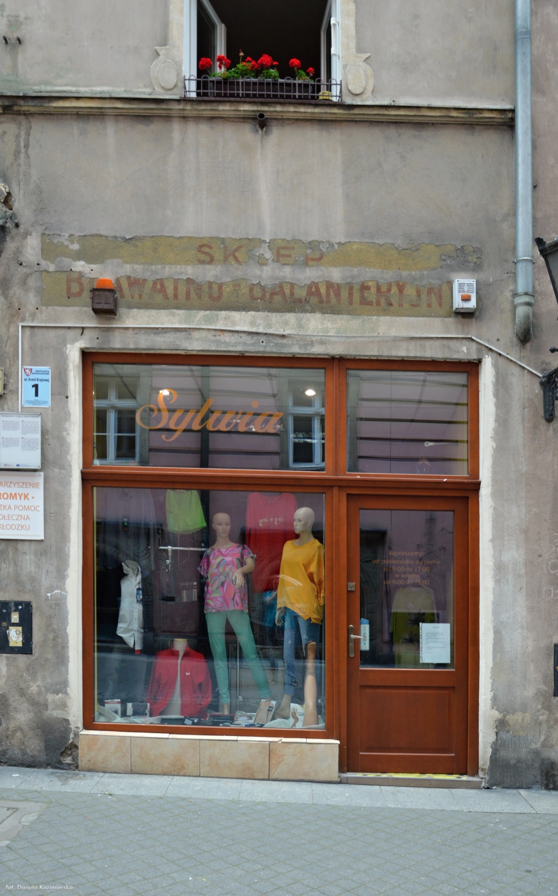 20 sierpnia 2022 , Ul. Armii Krajowej 1. Współczesne witryna sklepowa z widocznym nad nią wcześniejszym napisem.Skomentuj zdjęcie |
