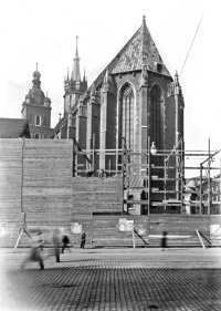 0 pobrań 368 odsłon 0 średnia ocen Poprzednie i następne zdjęcia 4elza Obiekty widoczne na zdjęciu Rozbiórka Wikarówki więcej zdjęć (16) Wikarówka Kościoła Mariackiego (stara) więcej zdjęć (9) Zbudowano: 1631 Zlikwidowano: 1934 Pierwszy budynek wikarówki (stary) został wzniesiony w stylu barokowym. W połowie XVIII w., przebudowano go według projektu architekta Franciszka Placidiego. Obiekt przetrwał do 1934, kiedy to został rozebrany ze względu na zły stan techniczny, grożący katastrofą budowlaną. Równocześnie z pracami rozbiórkowymi rozgorzała dyskusja na temat zagospodarowania tego miejsca. Pojawiły się głosy, m.in. Mariana Dąbrowskiego, redaktora naczelnego „Ilustrowanego Kuriera Codziennego”, aby pozostawić plac Mariacki otwarty na Mały Rynek. Ostatecznie zdecydowano się na budowę w tym miejscu nowego gmachu wikarówki, za czym przemawiały uwarunkowania historyczne oraz fakt, że pozostawienie pustego miejsca odsłoniłby zbyt duży, nienaturalny kontrast gotyckiej bryły kościoła św. Barbary z jego barokową apsydą. Prace nad nowym budynkiem, zaprojektowanym przez Franciszka Mączyńskiego (w stylu klasycyzującym), rozpoczęto w listopadzie 1935, a ukończono w 1936. pl. Mariacki więcej zdjęć (1520) |