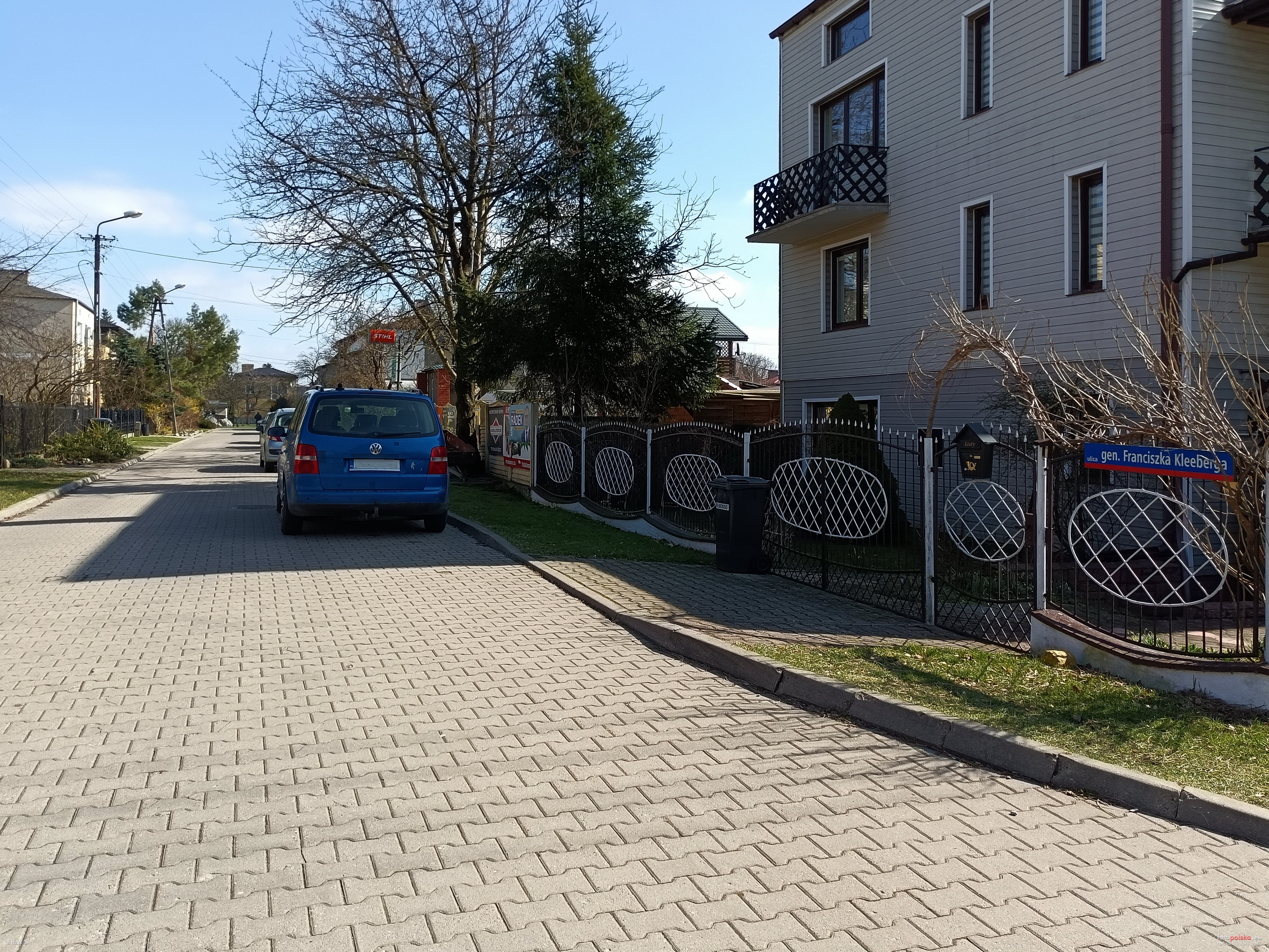 21 marca 2024 , Ulica Kleeberga Franciszka, gen w kierunku do ul. Koło. Z prawej fragment budynku nr 16.Skomentuj zdjęcie