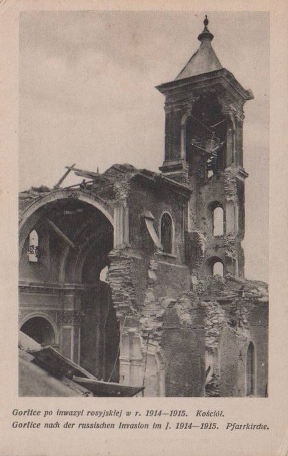 1915 , Zniszczony kościół Narodzenia NMP w Gorlicach.Skomentuj zdjęcie |