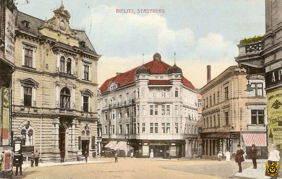 1915 , Ulica Wzgórze w 1915 r. Widoczne trzy kamienice - siedziba Komunalnej Kasy Oszczędności (dzisiejsza Patria) po lewej, Franciszka Kriegera (nr 20) w środku i Ernesta Giebnera (nr 18) po prawej.Skomentuj zdjęcie |