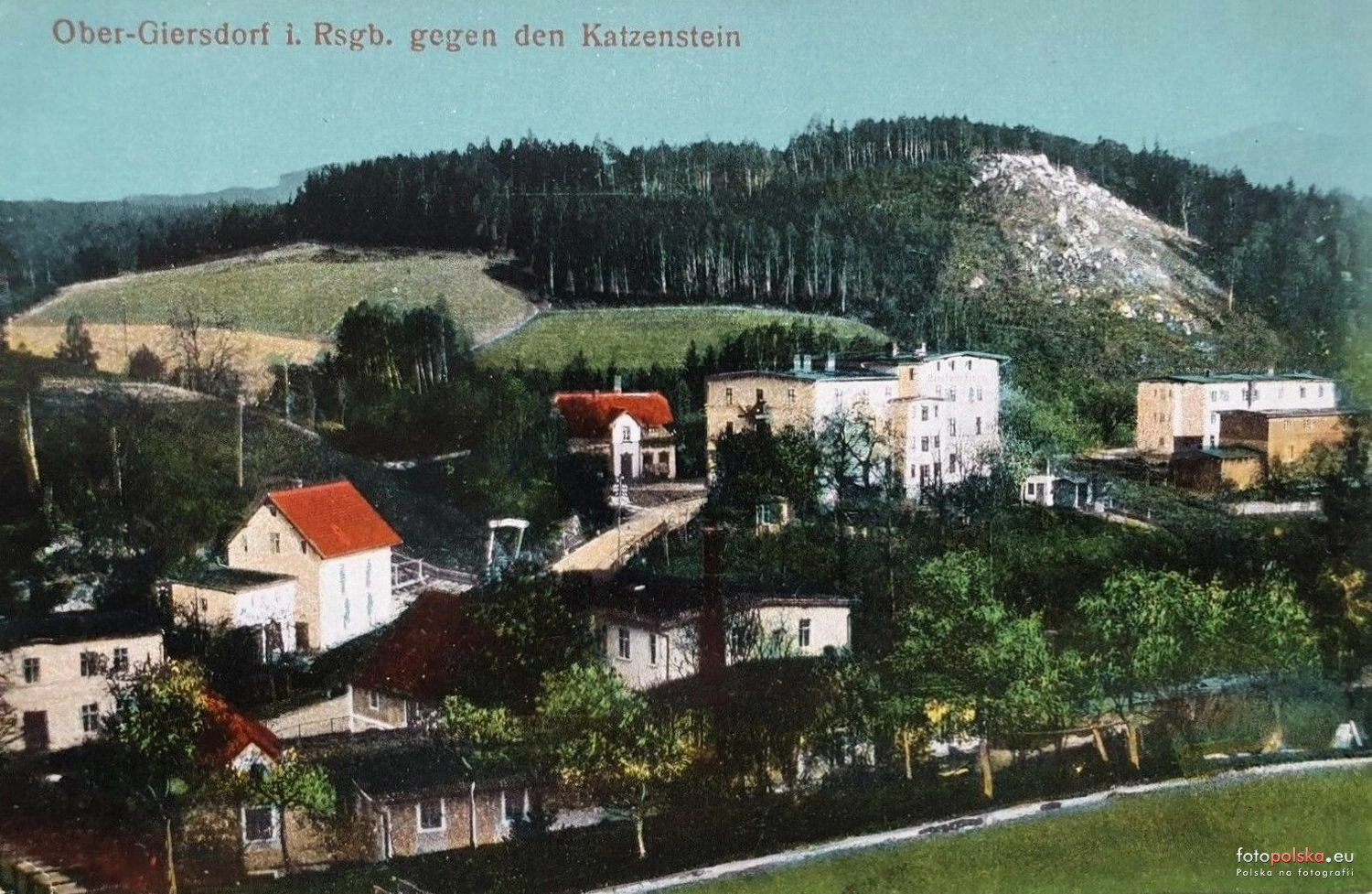 Lata 1908-1914 , Panorama górnej części Podgórzyna. Widoczna zabudowa dzisiejszej ul. Żółnierskiej, w tle wzgórze przy którego południowym zboczu znajduje się Dziurawa Skała (dawna Katzenstein).Skomentuj zdjęcie |