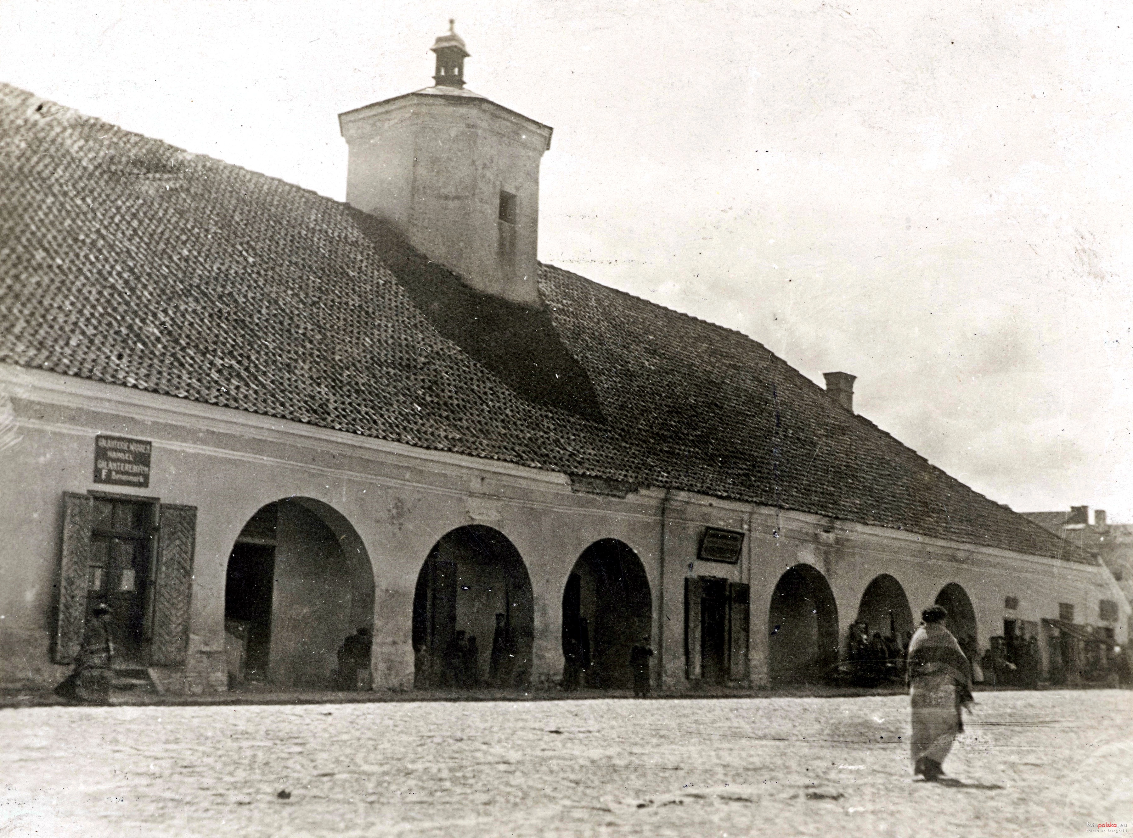 Lata 1880-1890 , Parterowy budynek magistracki (ratusz) z podcieniem w postaci arkadowego krużganka.Skomentuj zdjęcie |