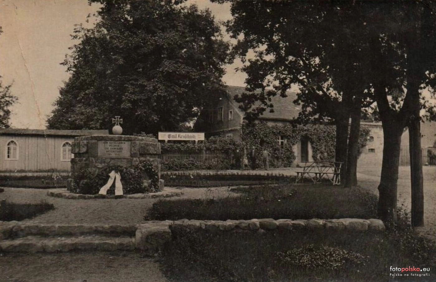 Lata 1926-1934 , Pomnik poległych w I wojnie z miejscowości Przewóz (niem. Priebus). Po prawej dom przy ul. Pocztowej 2, być może dawna gospoda. Na szyldzie wydaje się, że można odczytać imię - Emil Kraschwitz.Skomentuj zdjęcie |