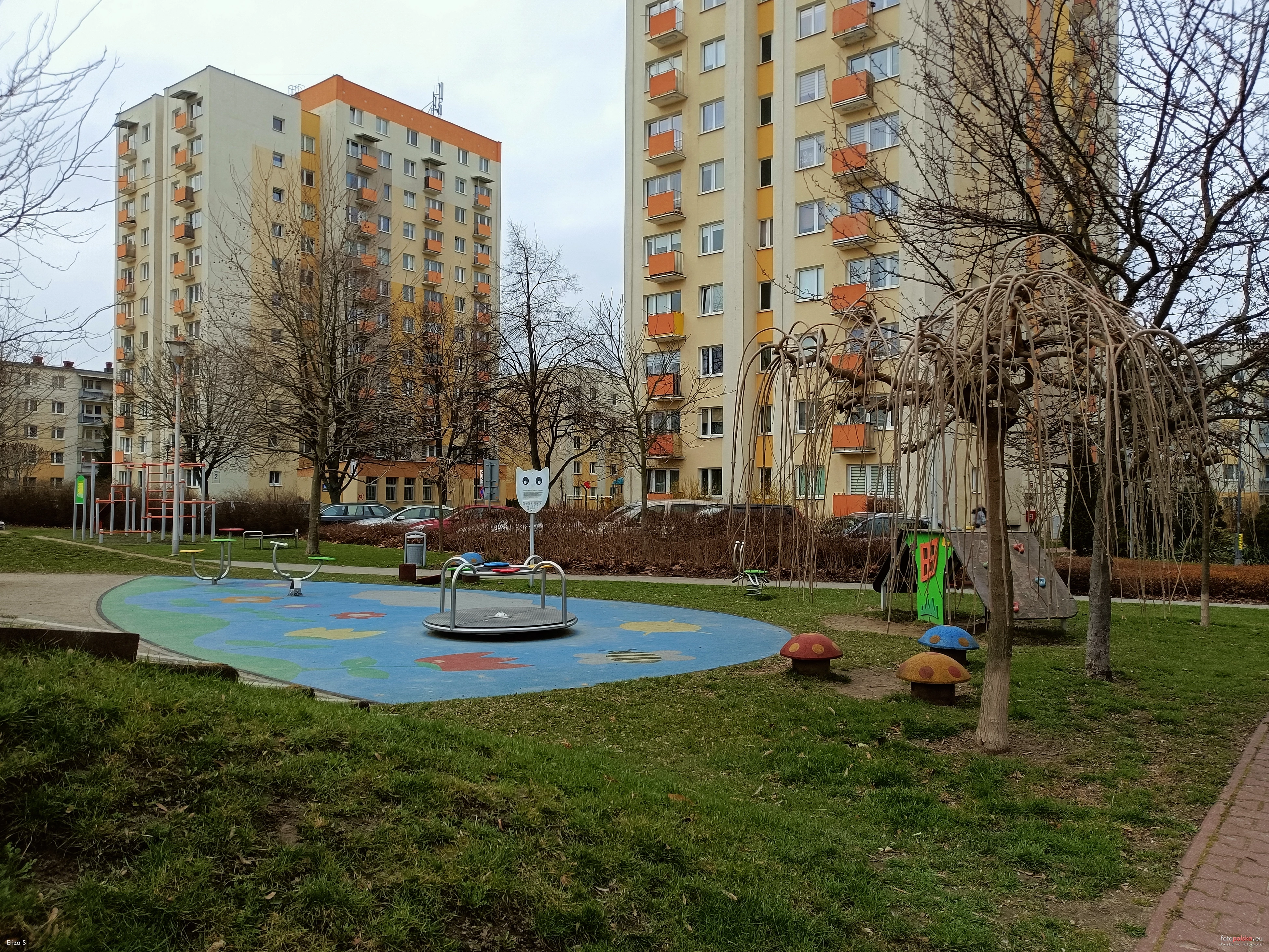 14 marca 2024 , Plac zabaw na skwerze, w głębi z lewej wieżowiec mieszkalny przy ul. Lessla 2.Skomentuj zdjęcie |