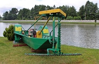 8 lipca 2014 , Kąpielisko Sędziszów, widoczna kosiarka wodna i fragment ogrodzenia od strony zachodniej,Skomentuj zdjęcie