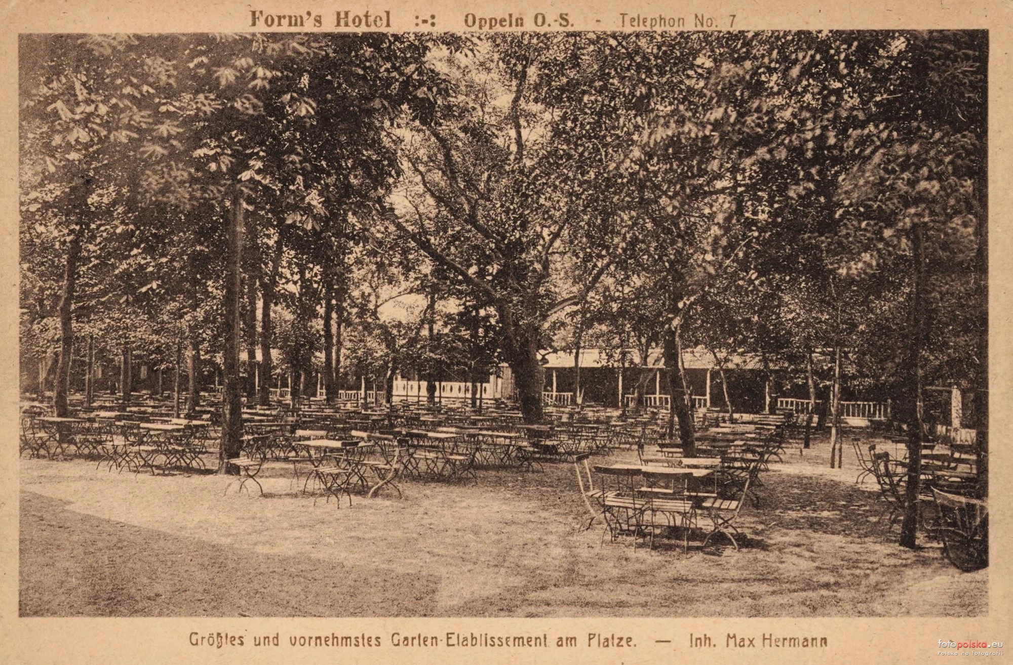 5 pobrań 2134 odsłony 6 średnia ocen Poprzednie i następne zdjęcia Cristoforo Obiekty widoczne na zdjęciu Hotel "Forms" więcej zdjęć (20) Zlikwidowano: 1945 Hotel Forms znajdował się w obecnie pustej przestrzeni przed budynkiem Filharmonii Opolskiej. Wówczas linia zabudowy była równa linii ul. Krakowskiej. Został on zniszczony podczas II Wojny Światowej, w 1945 roku. Kamienica początkowo była jednopiętrowa, jednak została sporo rozbudowana, hotel posiadał także ogródek, który musiał istnieć ze względu na pełnienie przez hotel funkcji etablissementu. Właścicielem hotelu był R. Grundamann. ul. Krakowska więcej zdjęć (1854) Dawniej: Beuthnische Gasse, Groschowitzer Gasse, Krakauer Strasse, Helmuth Brückner Strasse, Hindenburg Strasse, Stalina |