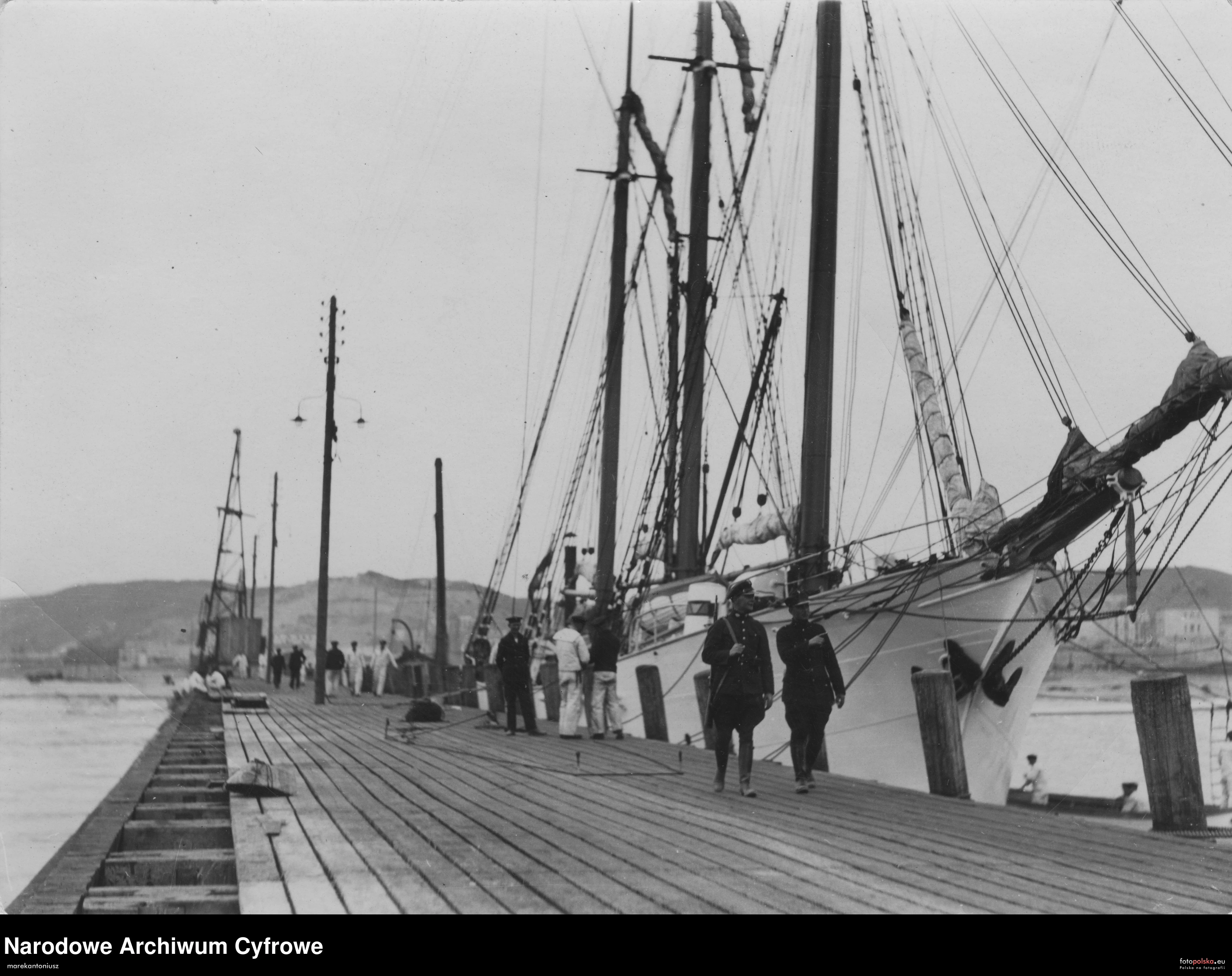 marzec 1928 , Żaglowiec (przyszły ORP Iskra) w porcie. Widoczni funkcjonariusze Straży CelnejSkomentuj zdjęcie