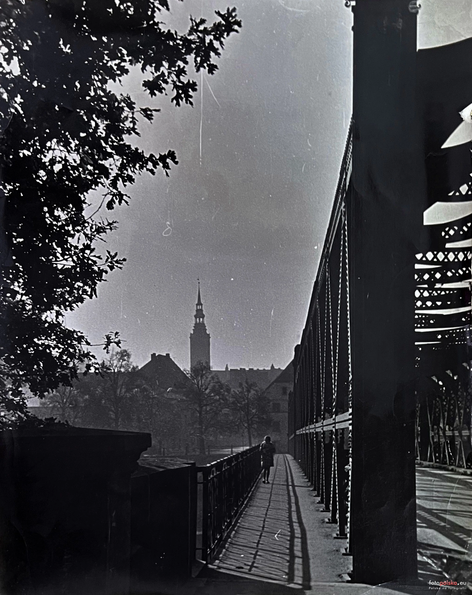 Lata 1956-1959 , Widok na most nad Odrą od strony ulicy Krakusa. W oddali uwieczniono zabudowania lewego brzegu rzeki z charakterystyczną wieżą ratusza miejskiego oraz nieistniejącymi dziś kamienicami stojącymi niegdyś przy ulicy Wojska Polskiego i Placu Nad Odrą. Źródło: Brzeg na starych fotografiach i pocztówkach via FB.Skomentuj zdjęcie