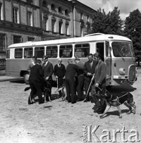 Milicyjne psy dla niewidomych. Niewidomi z owczarkami niemieckimi szkolonymi przez MO.