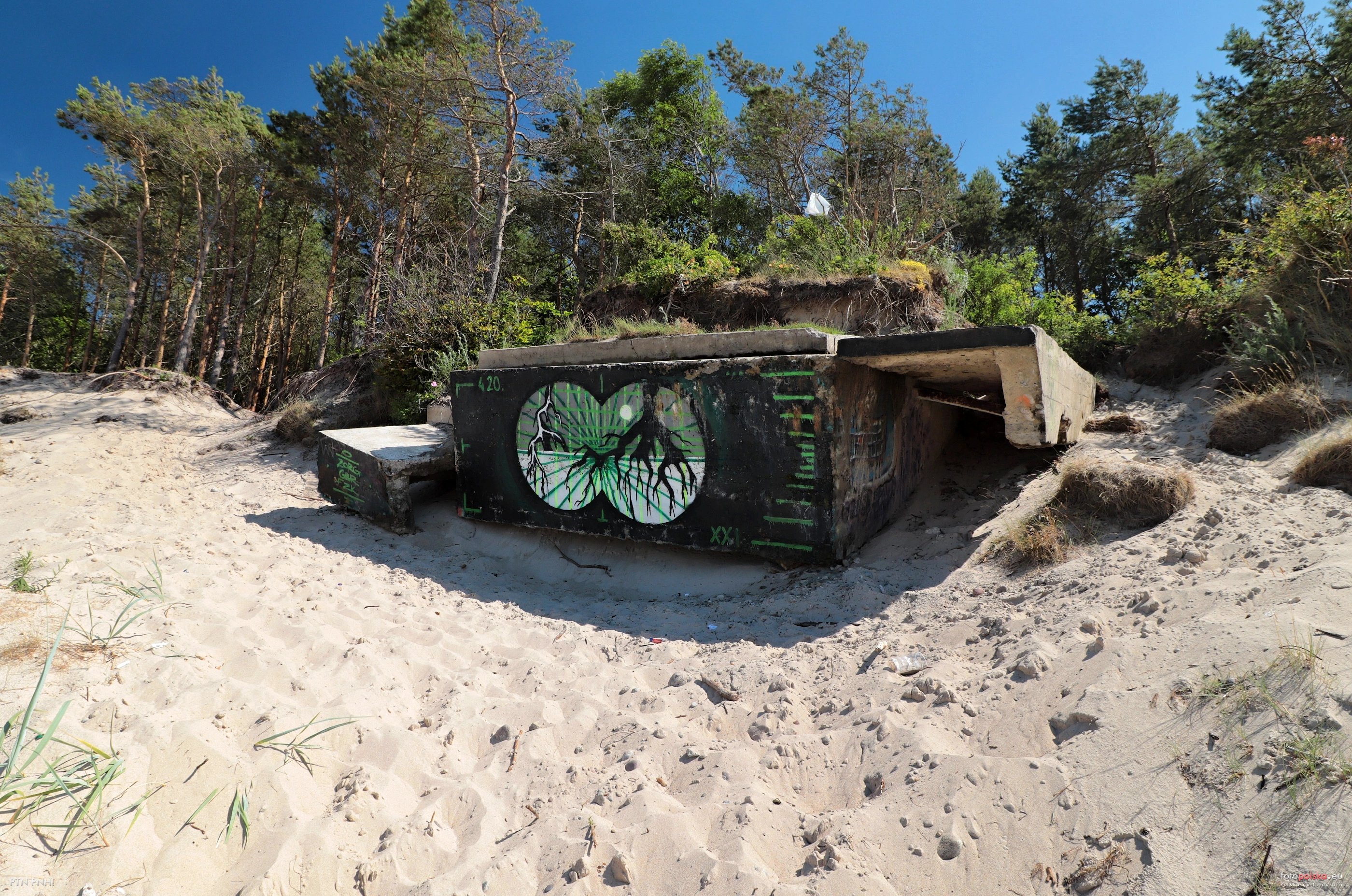 4 lipca 2022 , Ogólny widok na betonową platforme znajdującą się na wydmie przy plaźy.Skomentuj zdjęcie