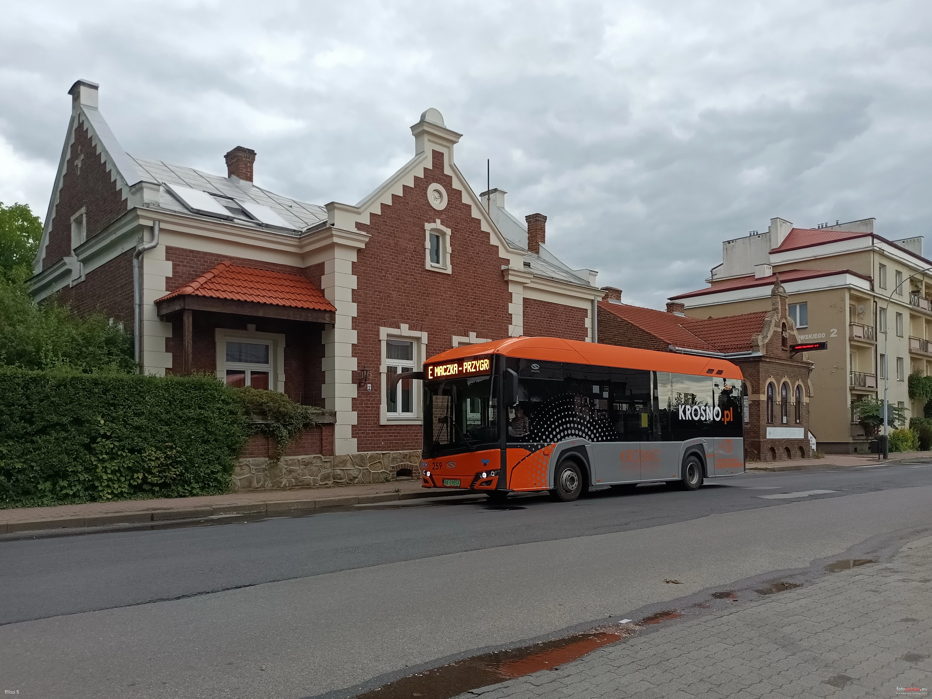 2 czerwca 2024 , Fragment ulicy Lewakowskiego, widok na autobus Solaris Urbino 9LE electric linii E Miejskiej Komunikacji Samochodowej Sp. z o.o.. W tle zabytkowe budynki Lewakowskiego 6 i 4. Z prawej fragment bloku mieszkalnego nr 2.Skomentuj zdjęcie |
