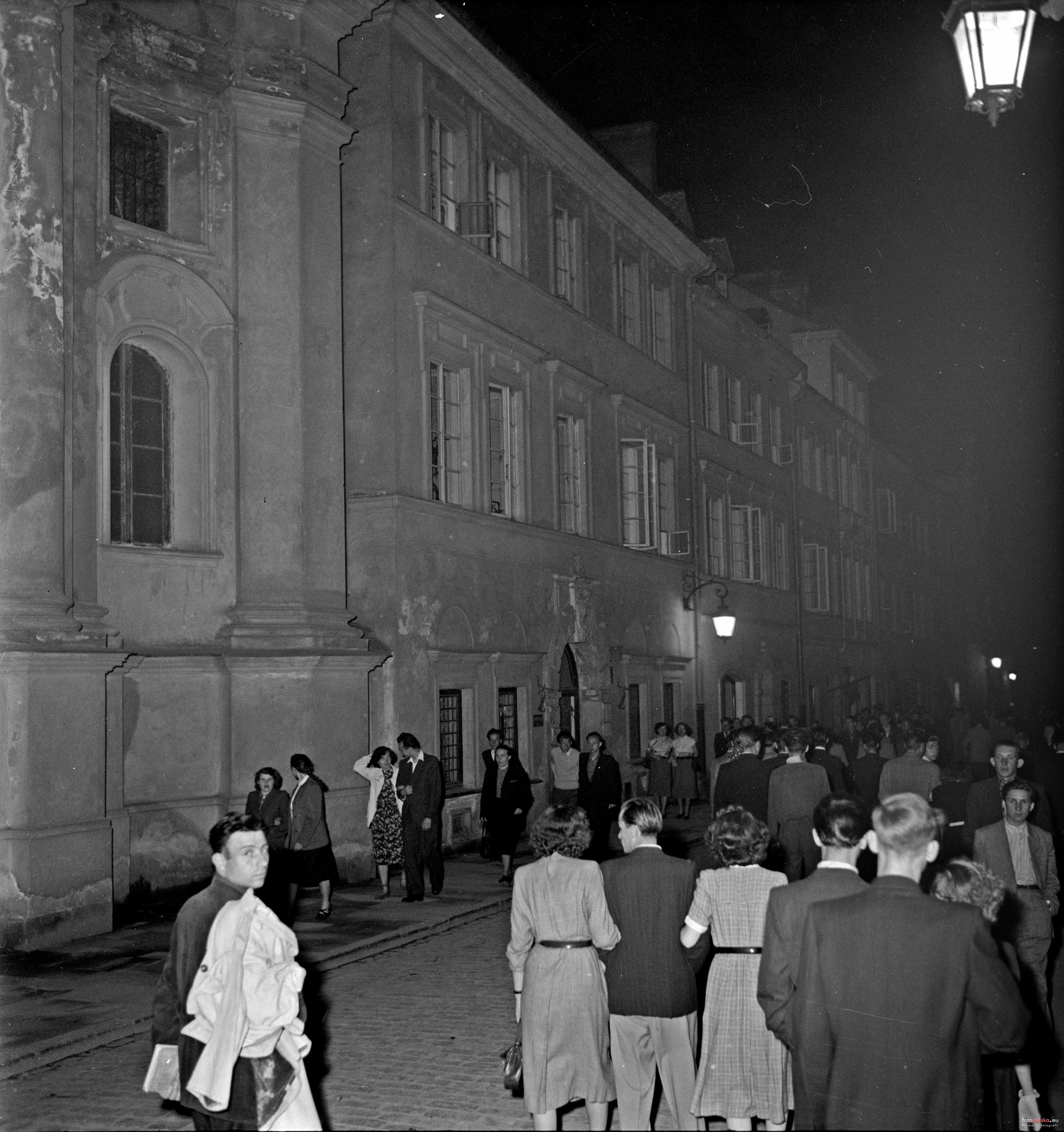 1 maja 1955 , Ul. Piwna od Placu Zamkowego do ul. Piekarskiej. Po lewej - kościół św. Marcina.Skomentuj zdjęcie
