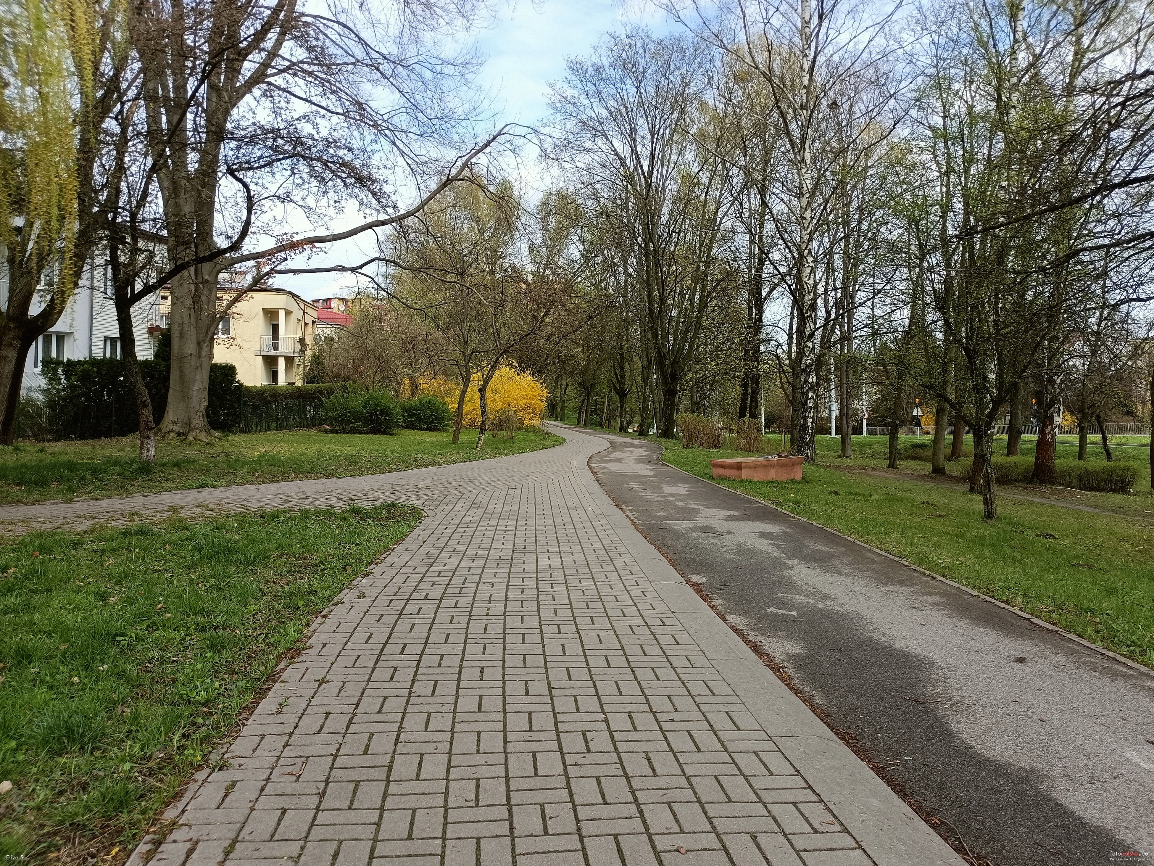 5 kwietnia 2024 , Fragment Parku Rzeźb, widok w kierunku ul. Głębokiej. Z prawej widoczny Postument po rzeźbie.Skomentuj zdjęcie |