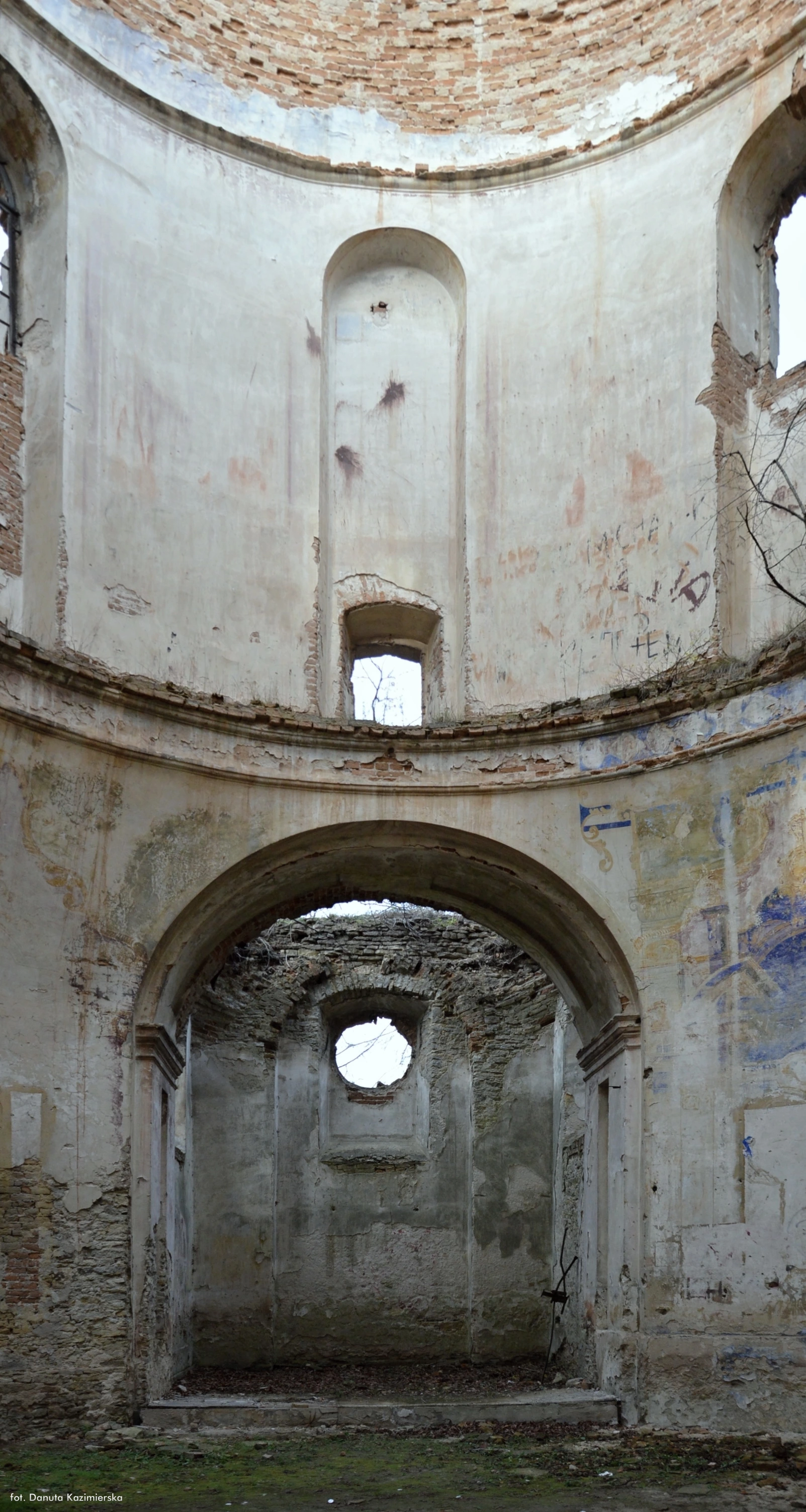 0 pobrań 325 odsłon 0 średnia ocen Poprzednie i następne zdjęcia da signa Obiekty widoczne na zdjęciu Wnętrza więcej zdjęć (13) Cerkiew św. Paraskewy więcej zdjęć (20) Zbudowano: 1798-1806 Murowana cerkiew pw. św. Paraskewii powstała w latach 1798 - 1806 z fundacji kniaziów lubyckich, potomków Wołochów Jakuba i Miczki, którzy w XV w. otrzymali od księcia Siemowita IV w tej wsi uprzywilejowane, dziedziczne kniastwo. Świątynia została wzniesiona na miejscu dawniejszej drewnianej, która stała na cmentarzu kniaziów. Architektem był Szymon Tarnawski, który przedstawił projekt okrągłej cerkwi na planie krzyża na około 1000 osób, o kubaturze 700 łokci 2 i wysokości 45,5 łokcia[1]. Do uroczystego poświęcenia świątyni doszło 14 października 1806 r. Nad drzwiami skarbca znajdowała się tablica z nazwiskami kniaziów - fundatorów: Bech, Deba, Feday, Jaceyko, Kiszczak, Kołodkiewicz, Kondratowicz, Kułajec, Łucieyko, Michałeyko, Onyszkiewicz, Putko, Pawliszcze, Putkiewicz, Rutko, Sapieha, Sawoyka, Właszinowski i Żarowski. Cerkiew zdobiły polichromie autorstwa: Kunickiego, Skopowskiego, Monastyrskiego i Kopystańskiego. We wnętrzu znajdował się ikonostas z XVIII w. z obrazem Jezusa Chrystusa namalowanym we włoskim stylu oraz ołtarze fundowane głównie przez przez Putkiewiczów, Putków, Łopuchów, Rałów[2]. Od 1916 roku w cerkwi znajdowały się relikwie św. Paraskewii przywiezione z Rzymu przez Kazimierza Lubeckiego z matką Pauliną. Cerkiew została uszkodzona w wyniku ostrzału artyleryjskiego czasie II wojny światowej. Opuszczona, od tamtej pory ulegała dewastacji - zawaliła się kopuła i stropy. Obecnie świątynia jest w stanie ruiny. W pobliżu znajduje się murowana dzwonnica i rozległy cmentarz, na którym zachowało się wiele pięknych nagrobków z warsztatów bruśnieńskich. |