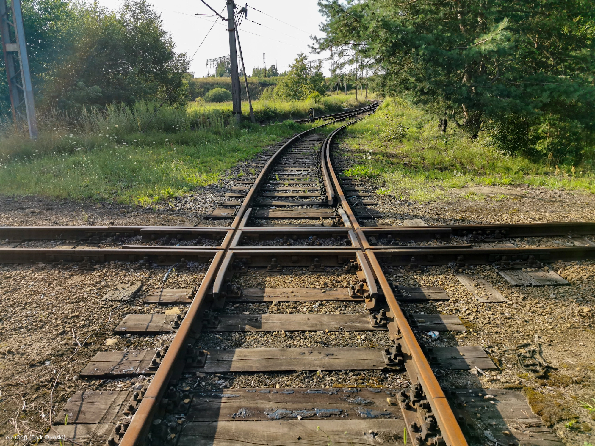 29 lipca 2021 , Skrzyżowanie toru normalnego 1435mm z torem wąskim 785mm. Tor nr 406 stacji Tarnowskie Góry prowadzący do jednostki wojskiej i tor wąski odcinka Tarnowskie Góry Wąskotorowe - Miasteczko Śląskie Wąskotorowe. Widok z perspektywy toru normalnego w stronę stacji TG, w dalszym planie znajduje się rozjazd krzyżowy podwójny nr 351Skomentuj zdjęcie