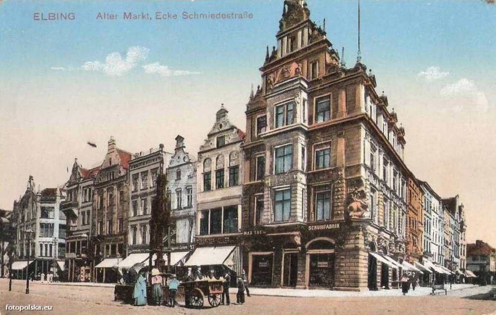 1917 , Fragment Starego Rynku i ulicy Kowalskiej w Elblągu. Narożna kamienica to Dwór Artusa.Skomentuj zdjęcie |