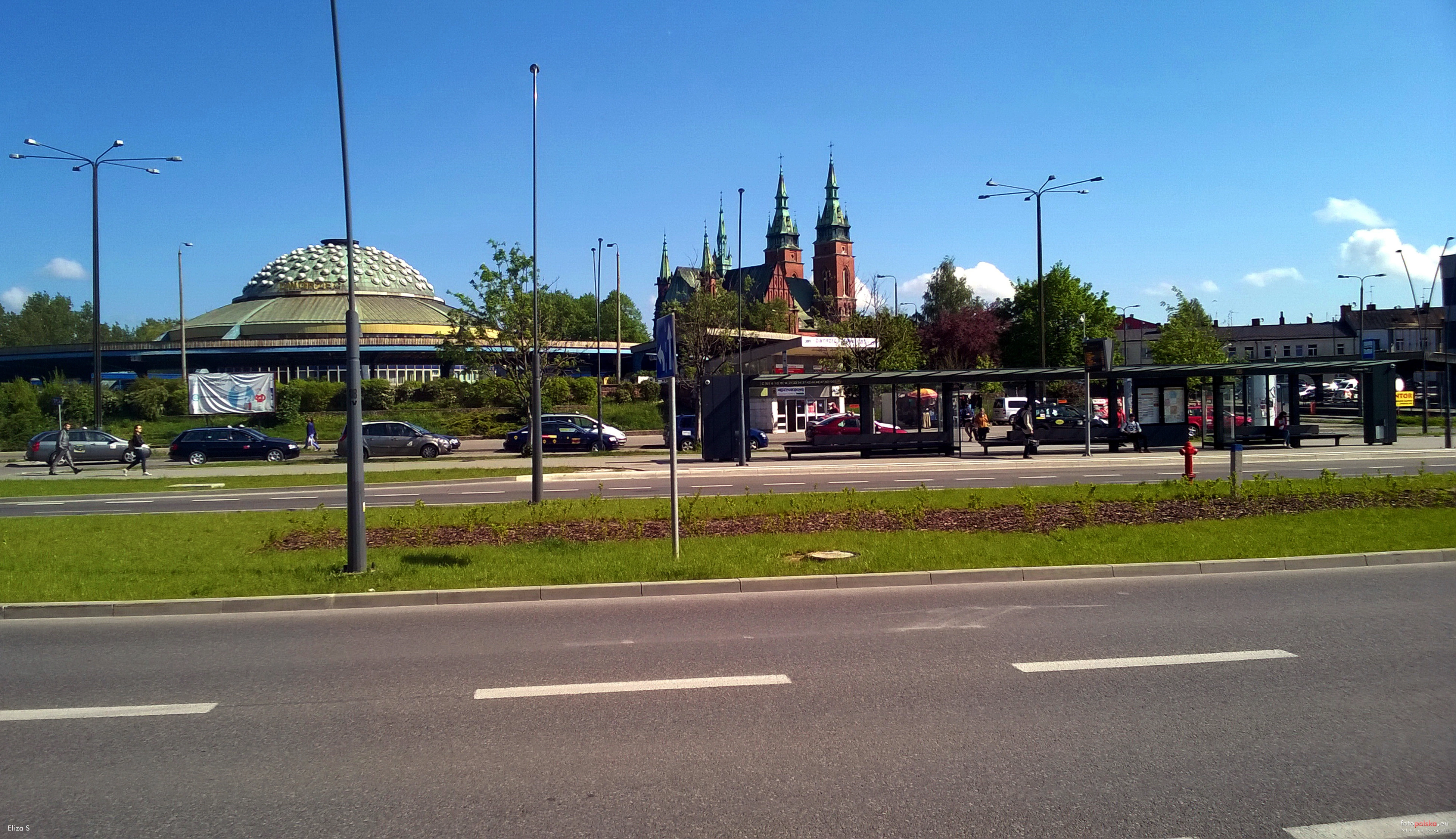10 maja 2016 , Fragment ulicy Czarnowskiej z przystankiem. W głębi z lewej kopuła Dworca autobusowego. Na środku w głębi wieże Kościoła Świętego Krzyża.Skomentuj zdjęcie |