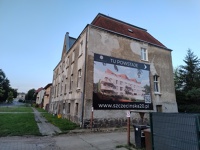 3 sierpnia 2024 , Budynek z reklamą nowej budowy.Skomentuj zdjęcie