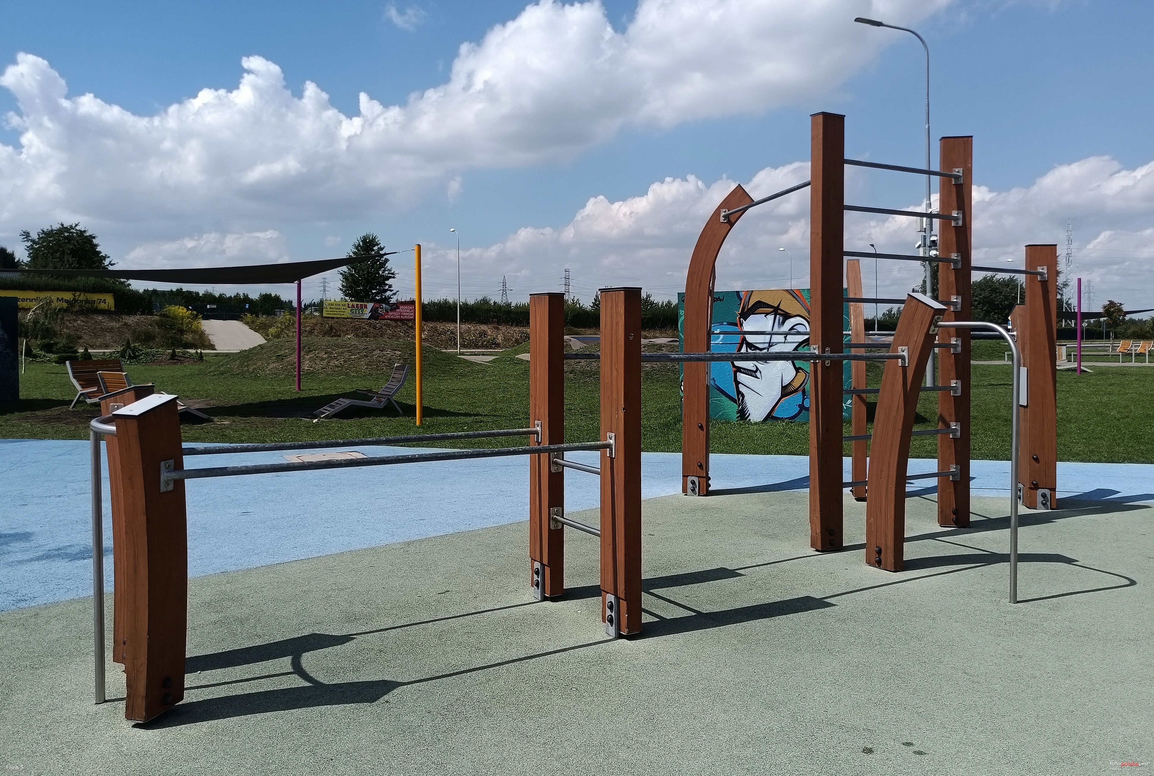 10 sierpnia 2024 , Street Workout w zielonej strefie przy SKENDE Shopping Centrum Handlowe i ul. Kupieckiej. W głębi kadru fragment specjalnego toru rowerowego - Pumprack.Skomentuj zdjęcie |