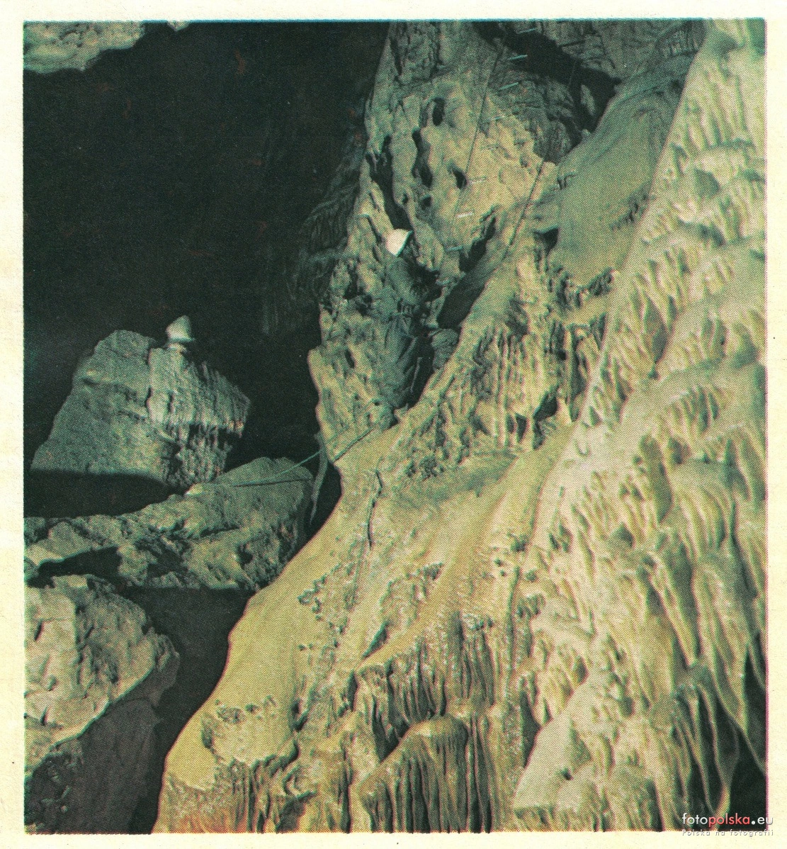 Lata 1979-1981 , Wspinaczka w Kominie Maurycego w dolnym piętrze jaskini.Skomentuj zdjęcie |