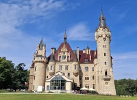 3 pobrania 1018 odsłon 6 średnia ocen Poprzednie i następne zdjęcia Smrk Obiekty widoczne na zdjęciu Zamek więcej zdjęć (414) Atrakcja turystyczna Zbudowano: XVII w. Dawniej: Centrum Terapii Nerwic, Wojewódzki Ośrodek Profilaktyczno-Sanatoryjny, Schloß Zabytek: 681/63 z 24-06-1963 Zamek w Mosznej, ufundowany przez Thiele-Wincklerów - jedną z najzamożniejszych śląskich rodzin, należy do najwspanialszych zabytkowych budowli na Opolszczyźnie. Odbudowany i rozbudowany został po pożarze, który wybuchł w nocy z 2 na 3 kwietnia 1896 r. (powiększony został w 1913 r). Duże zróżnicowanie kształtów i wysokości, zawiłość układu poszczególnych elementów architektonicznych, wreszcie całkowite zatarcie brył stanowiących korpus każdej z części zamku powoduje, iż trudno jest od razu pojąć koncepcję zawartą w owej budowli. Najciekawsze pomieszczenia w zamku to: reprezentacyjna klatka schodowa z krużgankiem w obecnej kawiarni (cały wystrój z sandałowego drewna), galeria, najbardziej imponujący "gabinet pana" (obecna biblioteka), a ponadto kaplica, salon "pod pawiem", sala myśliwska, stylowe apartamenty - czarny i biały, jadalnia, palmiarnia. Wszystkie te pomieszczenia służą kuracjuszom, niektóre z nich udostępniane są również do zwiedzania. Zamek posiada ogółem 365 pomieszczeń i 99 wież i wieżyczek. Powierzchnia wynosi 7 tys. m2, kubatura - 65 tys. m3. Początki tej budowli to prawdopodobnie połowa wieku XVII. Najstarsza część zamku w Mosznej jest odbudowanym pałacykiem o barokowych XVIII - wiecznych formach. Dwa boczne skrzydła powstały później. Plan zamku układa się w nieregularny kształt litery U, przy czym skrzydła boczne, dołączone od wschodu i zachodu do środkowej części pałacu, głęboko wchodzą w stronę parku, ujmując z obu stron taras z ozdobną balustradą i reprezentacyjnymi lustrzanymi schodami. Część środkowa, to dawny pałac barokowy, który w roku 1896 prawie doszczętnie spłonął. W tym samym roku odbudowany w pierwotnym kształcie. Do roku 1900 powstała najbardziej okazała część wschodnia, a w latach 1912-14 dobudowane zostało skrzydło zachodnie. Po wojnie użytkowały go różne instytucje, aż do 1972 roku, kiedy w zamku zorganizowany został Wojewódzki Ośrodek Profilaktyczno-Sanatoryjny. Do kwietnia 2013 roku w zamku mieściło się Centrum Terapii Nerwic, które zostało przeniesione do nowego obiektu wybudowanego nieopodal. Część wnętrz zamku udostępniona jest zwiedzającym. Zamek oferuje również miejsca noclegowe w pięknych zabytkowych wnętrzach. Do dyspozycji gości przeznaczone są pokoje oraz apartamenty z osobną łazienką oraz apartament 5 osobowy posiadający dwie sypialnie. Info ul. Zamkowa więcej zdjęć (887) |