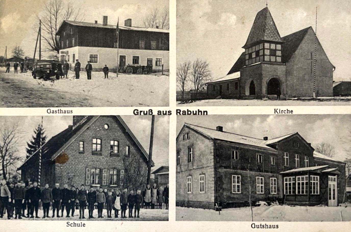 Lata 1930-1932 , U góry gospoda i kościół, na dole szkoła i dom mieszkalny w folwarkuSkomentuj zdjęcie