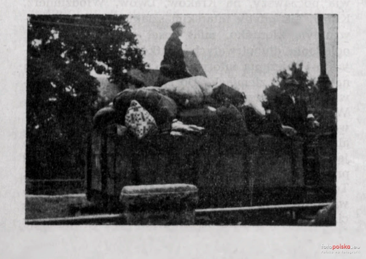 1946 , Niemcy opuszczający Sobieszów (w tle budynek 182 przy ulicy Cieplickiej; widoczne ogrodzenie przez hotelem Tietze).Skomentuj zdjęcie |