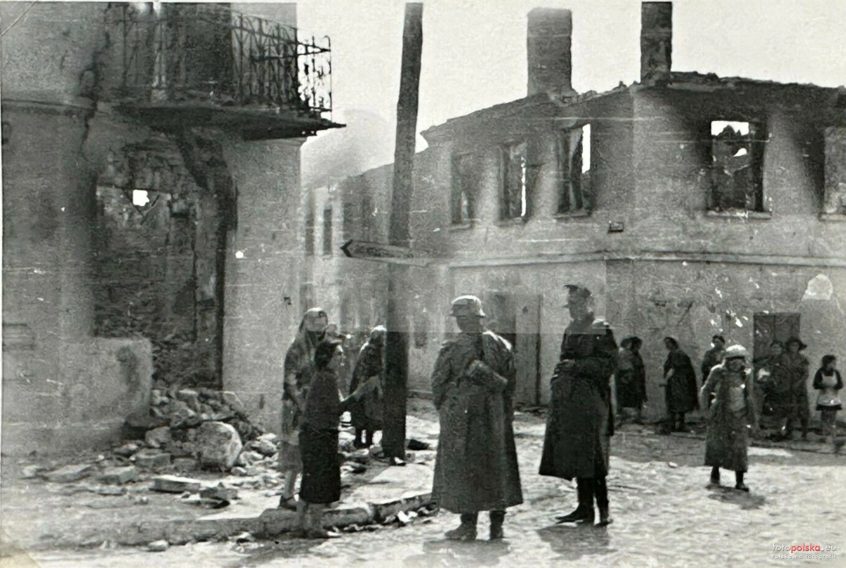 9 września 1939 , Zniszczone kamienice południowego narożnika Rynku.Skomentuj zdjęcie