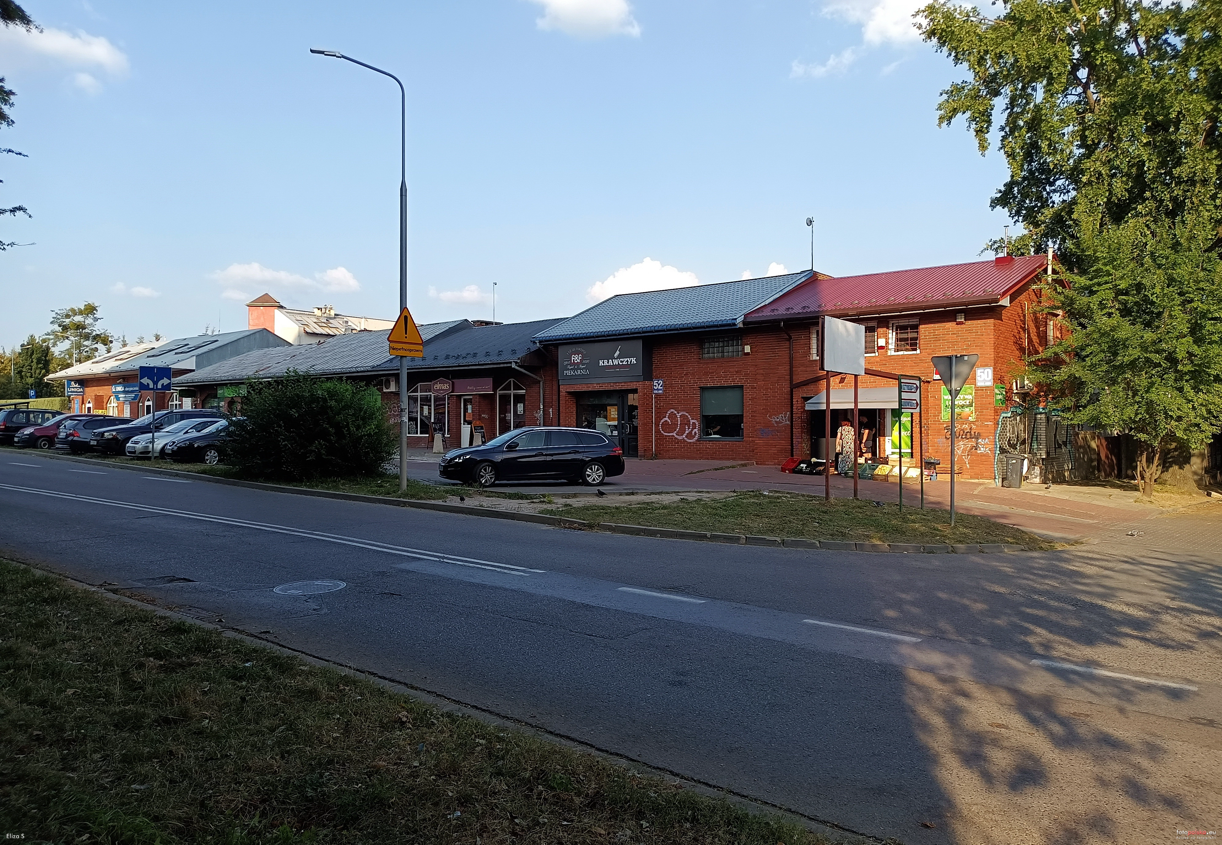 28 sierpnia 2024 , Fragment ulicy Szklanej, widok na pawilon handlowo-usługowy z adresami; od prawej Szklana 50 do lewej z nr parzystymi do 60.Skomentuj zdjęcie