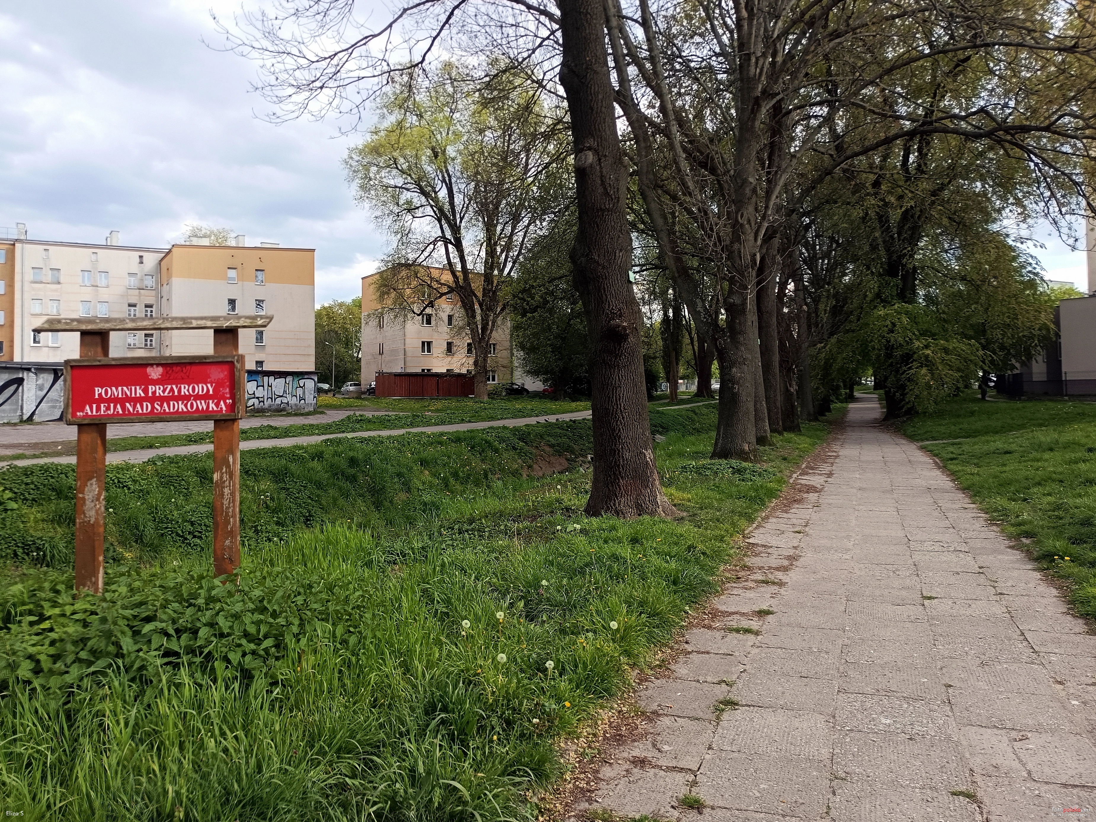 27 kwietnia 2024 , "Aleja nad Sadkówką" Pomnik przyrody, widok z ul. Andrzeja Struga w kierunku ul. 25 Czerwca. Aleja spacerowa i szpaler drzew będących pomnikami przyrody.Skomentuj zdjęcie
