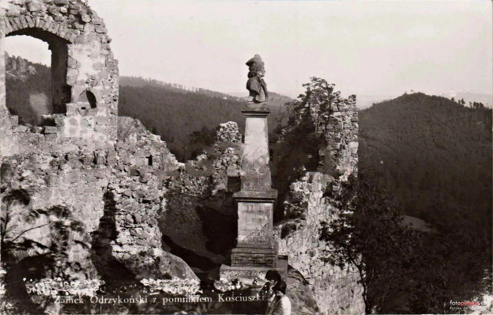 Lata 1930-1939 , Pomnik Tadeusza Kościuszki w ruinach zamku.Skomentuj zdjęcie |