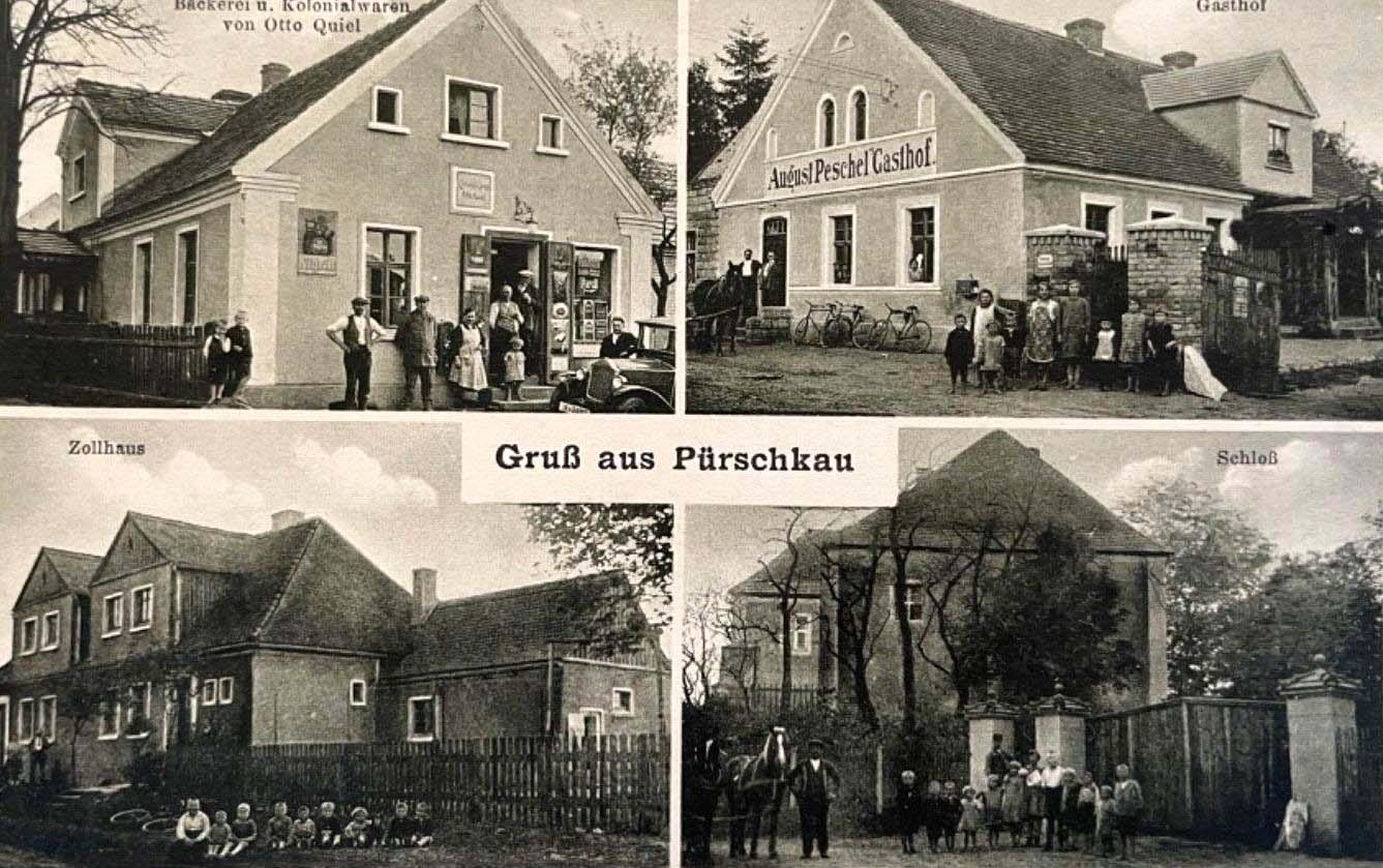 Lata 1930-1934 , Na zdjęciach górnych budynek z piekarnią i sklepem Otto Quiela oraz gospoda Augusta Peschela, na dolnych urząd celny i dwórSkomentuj zdjęcie |