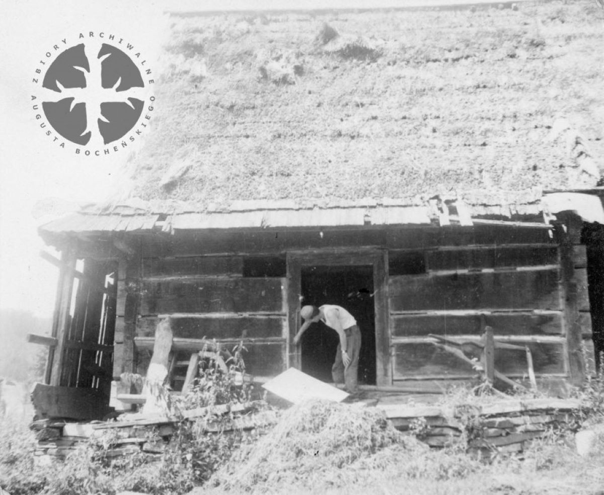 1960 , Komańcza - Chyża (obecnie w MBL), elewacja frontowa, na zdjęciu uczestnicy prac inwentaryzacyjnychSkomentuj zdjęcie |