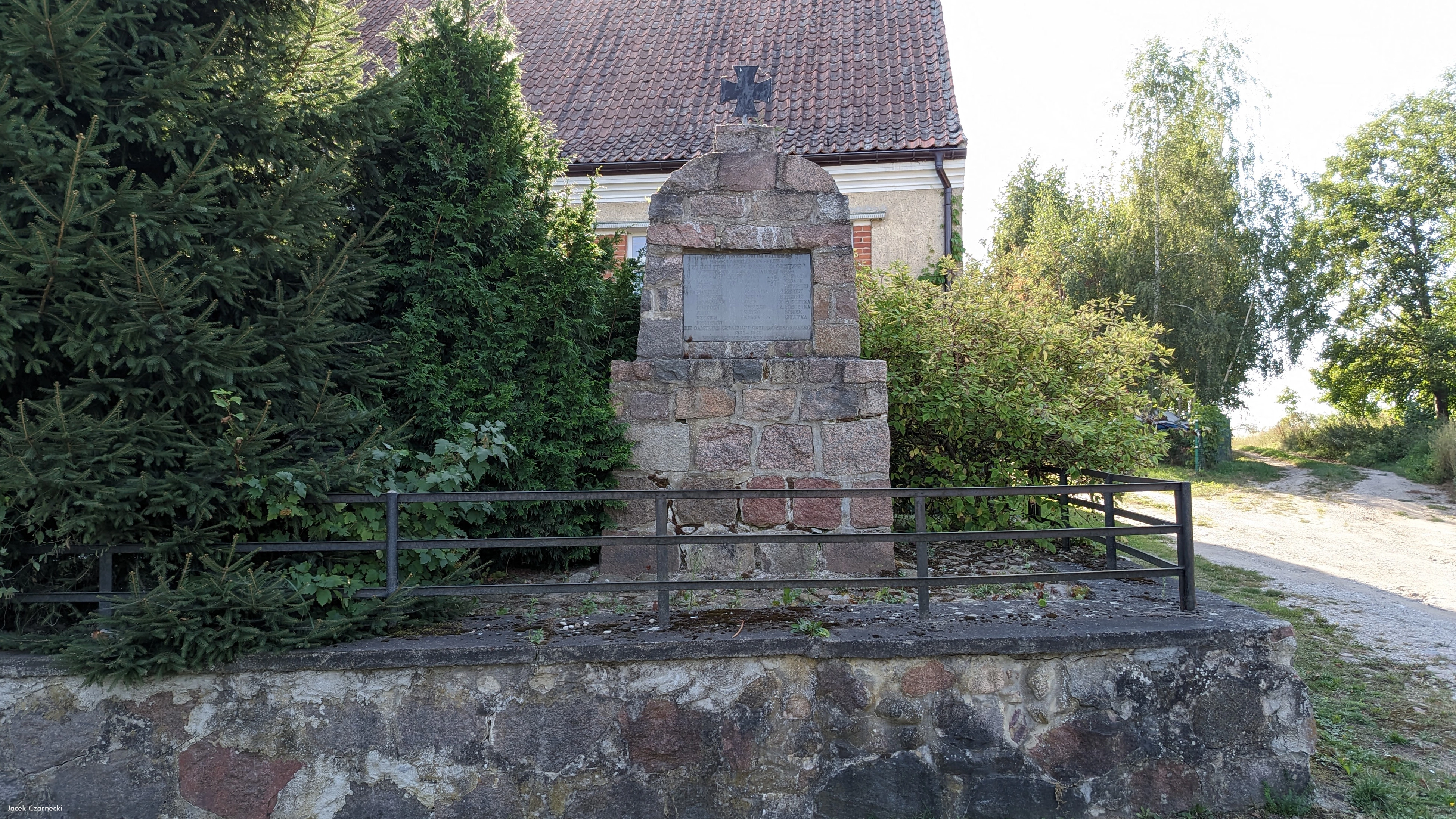0 pobrań 377 odsłon 6 średnia ocen Poprzednie i następne zdjęcia Ełk•Lyck Fotomuzeum Obiekty widoczne na zdjęciu Pomnik poległych więcej zdjęć (5) Pomnik znajduje się przy świetlicy, na północnym krańcu wsi. Ma formę zbliżoną do obelisku o łącznej wysokości ok. 2,8 m. Zbudowany jest z granitowej kostki, zwieńczony krzyżem żelaznym. Po 1945 r. uszkodzony, odrestaurowany na początku XXI w. staraniem członków Kreisgemeinschaft Lyck (Stowarzyszenia Dawnych Mieszkańców Powiatu Ełk). Na nowej tablicy napis: DEN FÜRS VATERLAND IM WELTKRIEG / 1914-18 GEFALLENEN HELDEN / KU CZCI TYCH KTÓRZY ZGINĘLI ZA OJCZYZNĘ / W PIERWSZEJ WOJNIE ŚWIATOWEJ 1914-18 / Lt KOSLOWSKI, Fw LALLO, Sgt BÖTTCHER, Uffz MARZIAN, BÖTTCHER, BRINKMANN, DOBROCH, FEHR, FYDRICH FRIEDRICH, F. GAYKO, J. GAYKO, GNATT, GERLACH, GERLITZ, JOPP, KWIEDOR, KOYRO, KEMPA, KOWALZIK, PEDACK, PATZINSKI, J. RIEKEIT, H. RIEKEIT, F. SOBOTTKA, A. SOBOTTKA, SCHIEK, CHLUPKA / DIE DANKBARE ORTSCHAFT ORZECHOWEN/NUßBRG / 1538-1918 / WDZIĘCZNI MIESZKAŃCY ORZECHOWA |