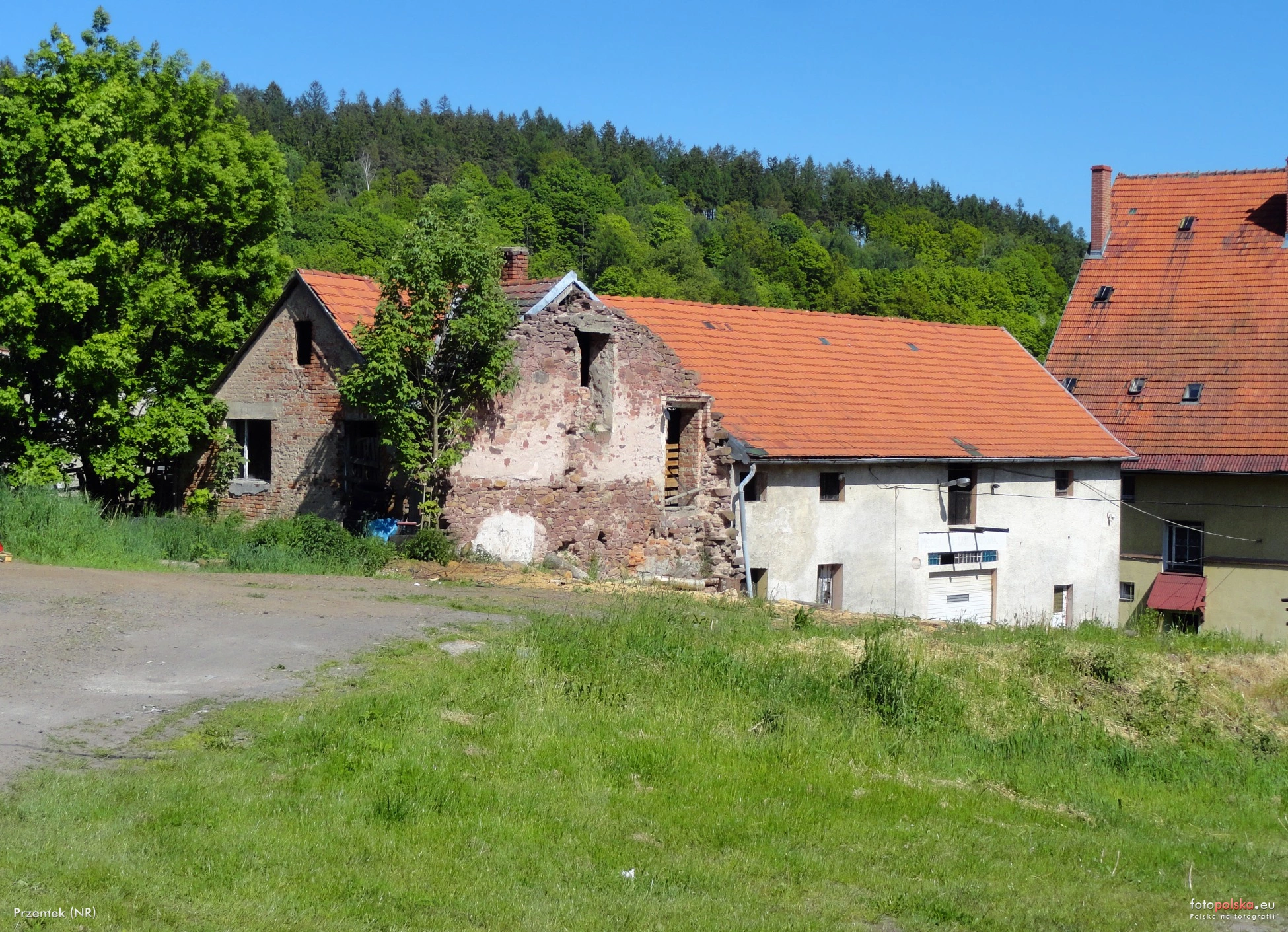 30 maja 2023 , Jeden z budynków wchodzący w skład dawnego gospodarstwa rolnego przy ulicy Cmentarnej w Nowej Rudzie. |